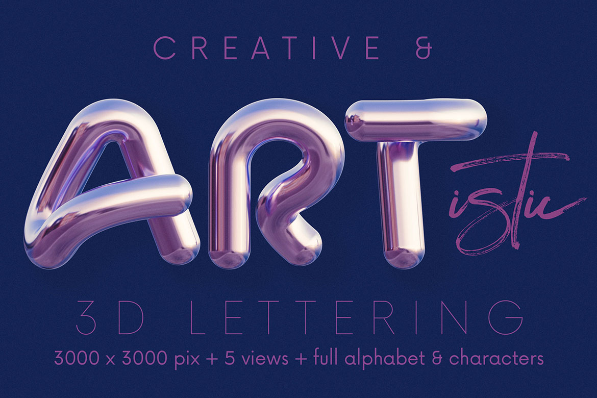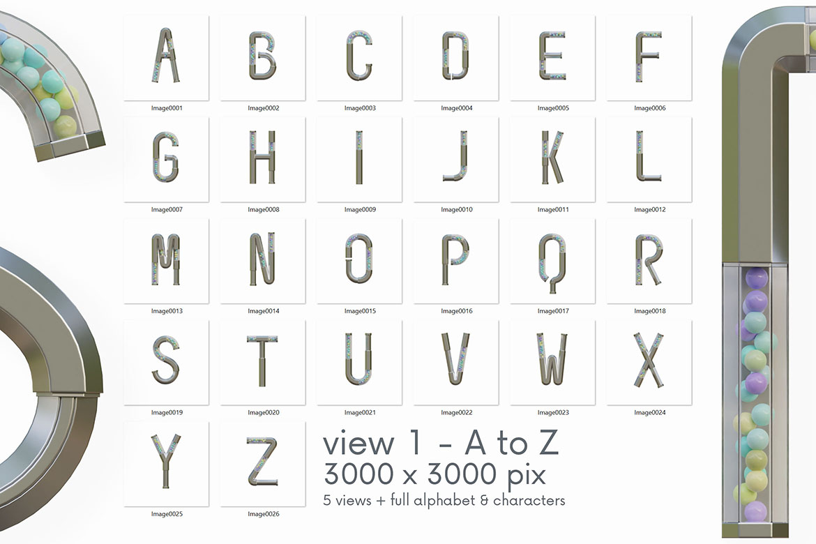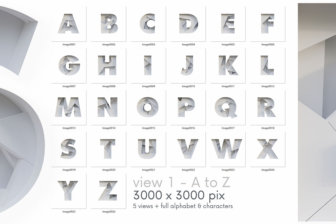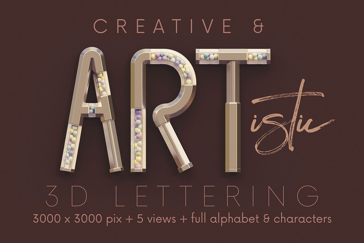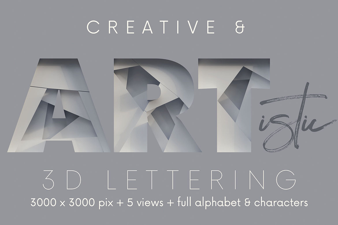 - 12 creative 3D lettering or alphabet image sets (transparent PNG images)