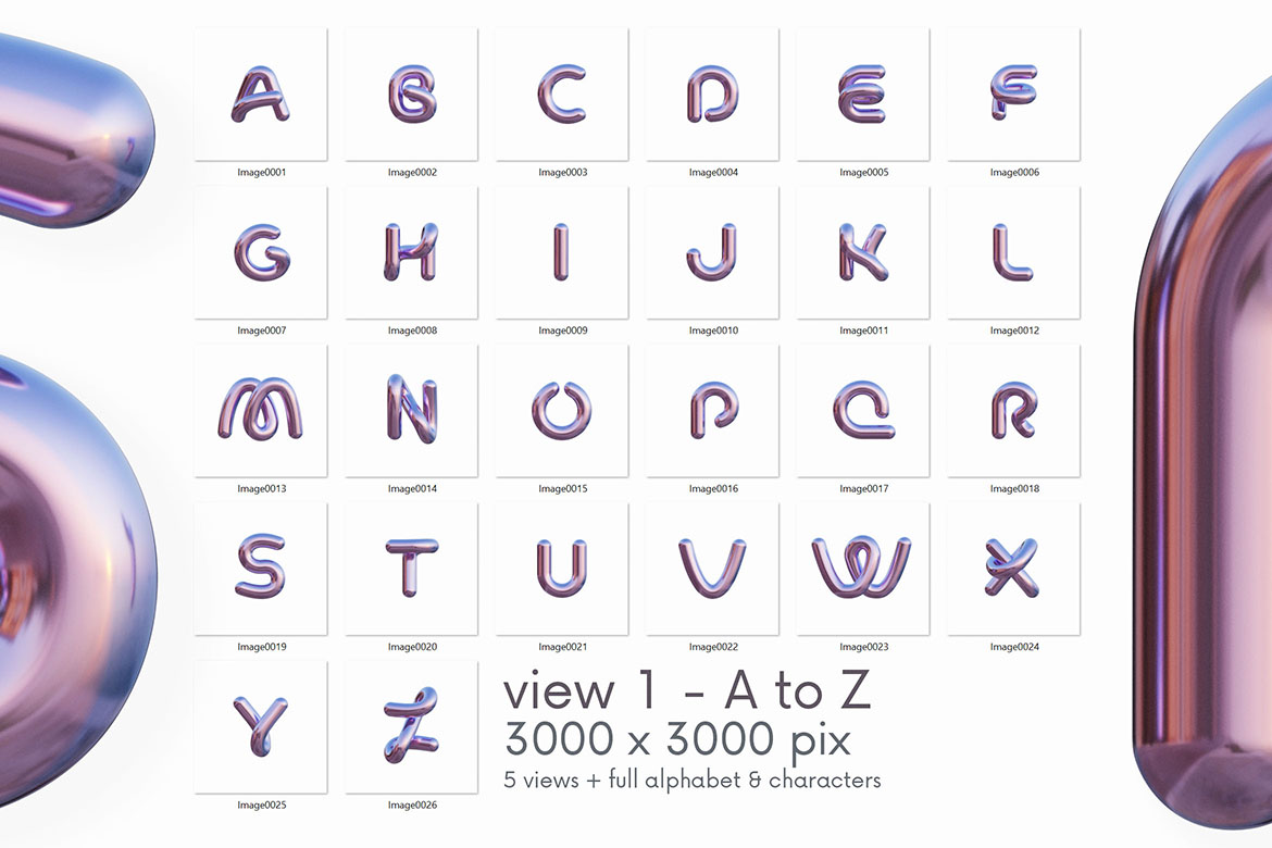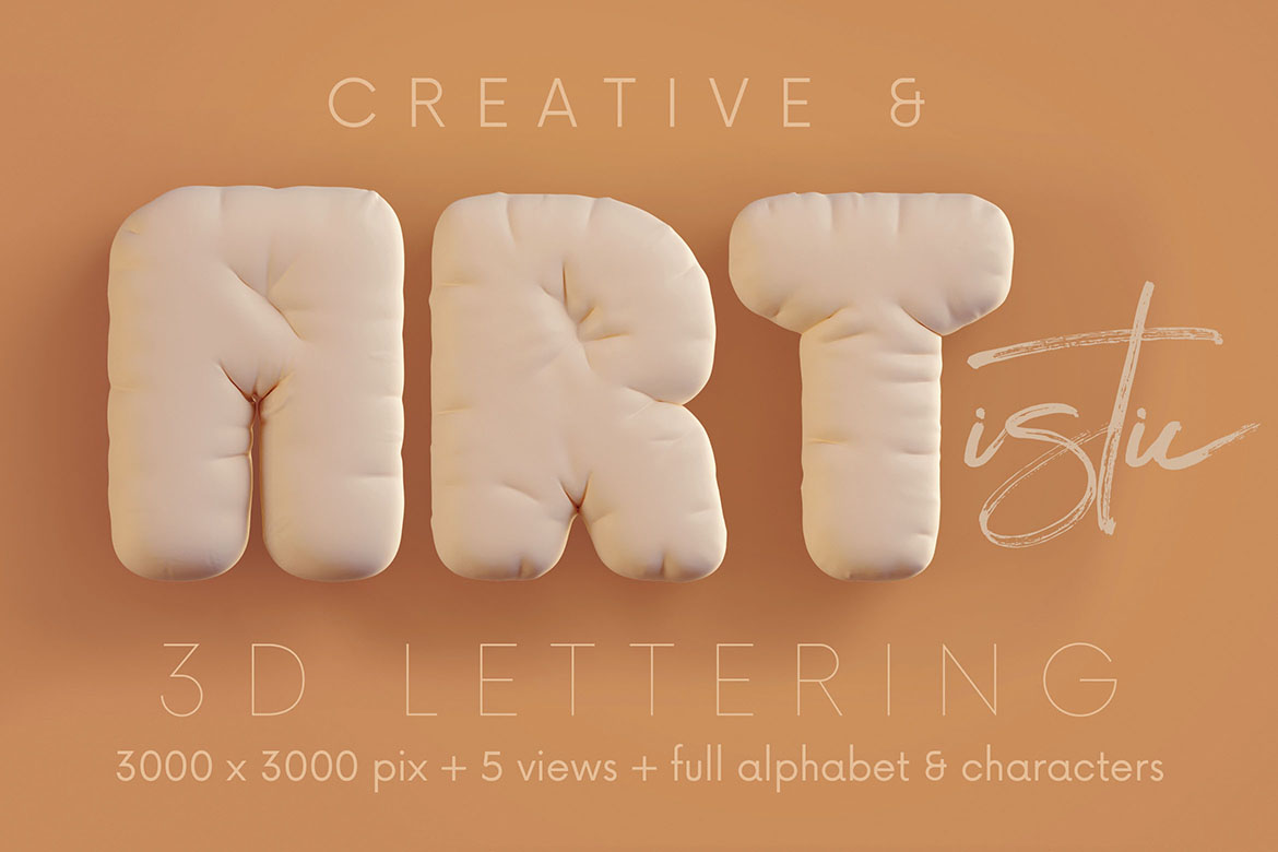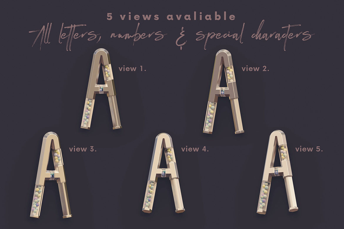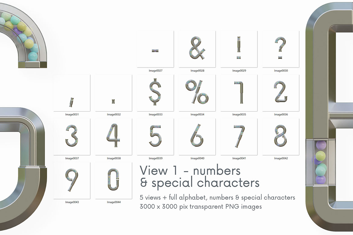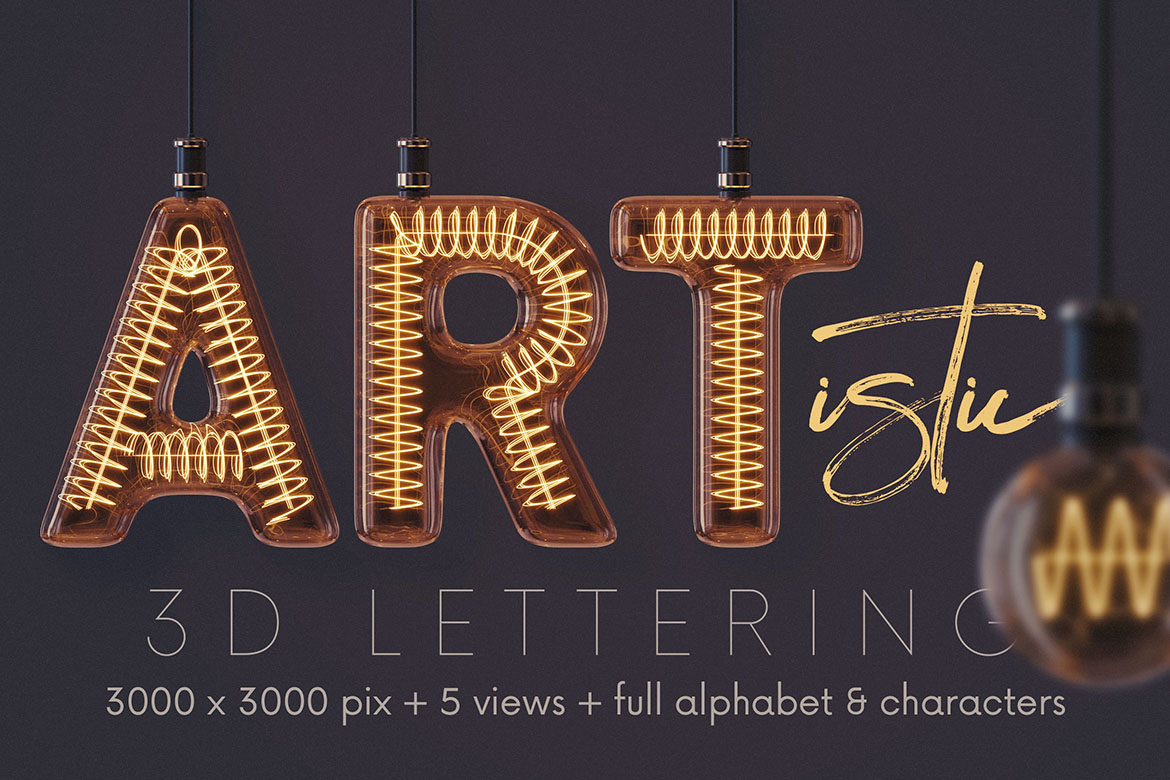 - 12 creative 3D lettering or alphabet image sets (transparent PNG images)