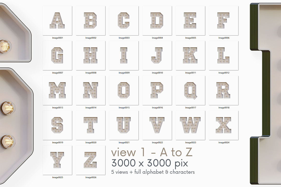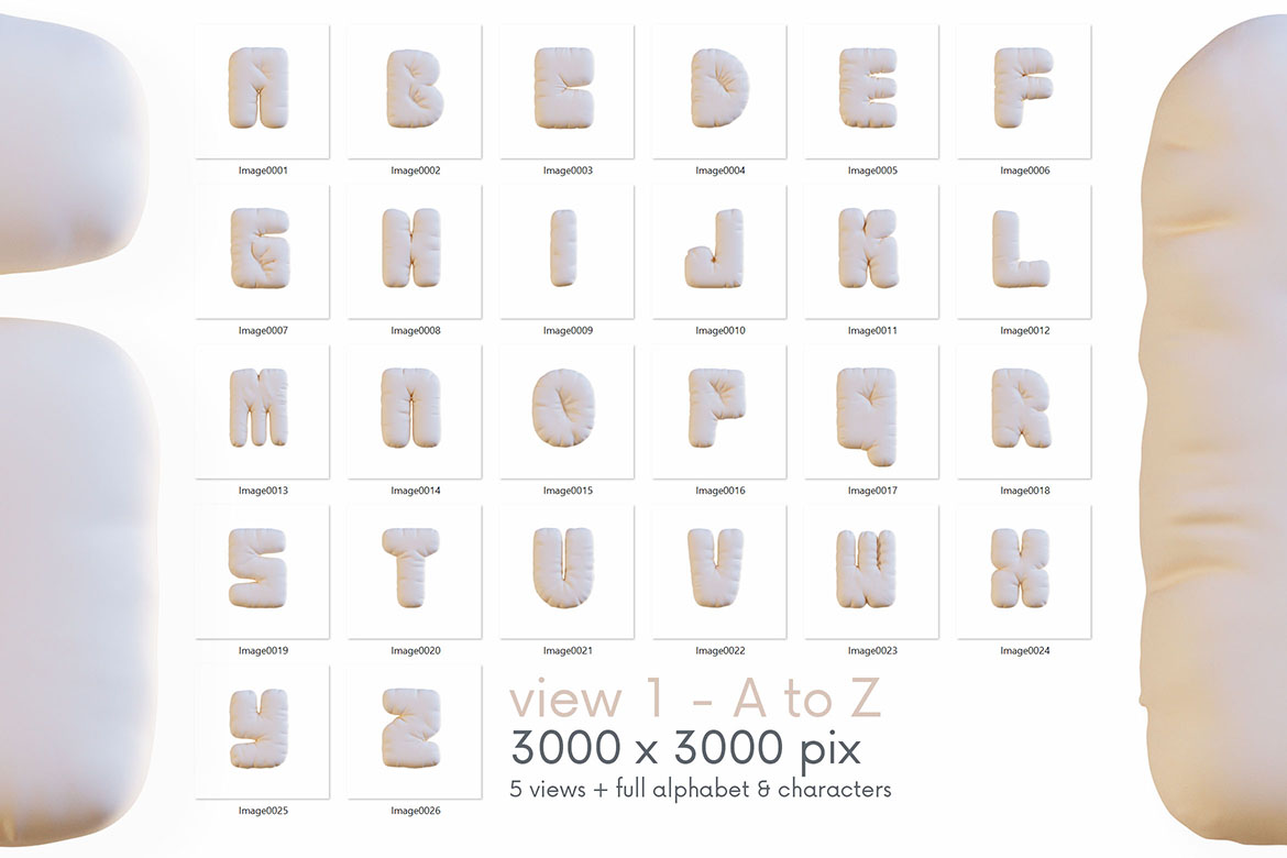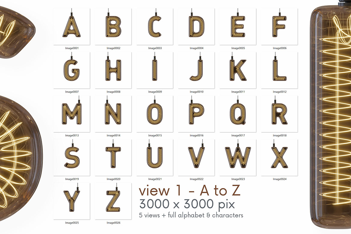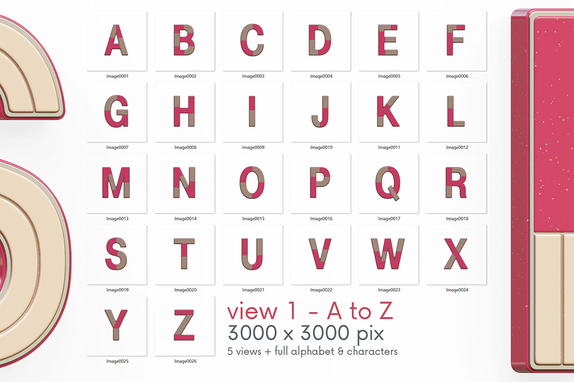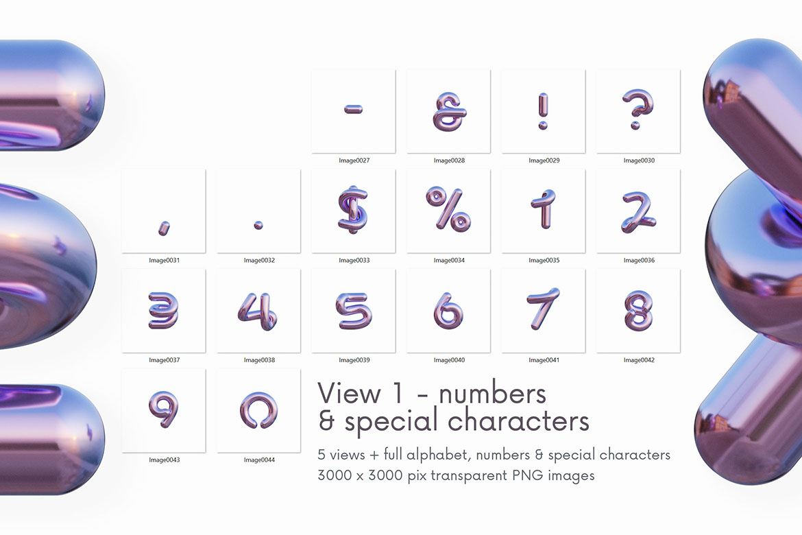 - 12 creative 3D lettering or alphabet image sets (transparent PNG images)