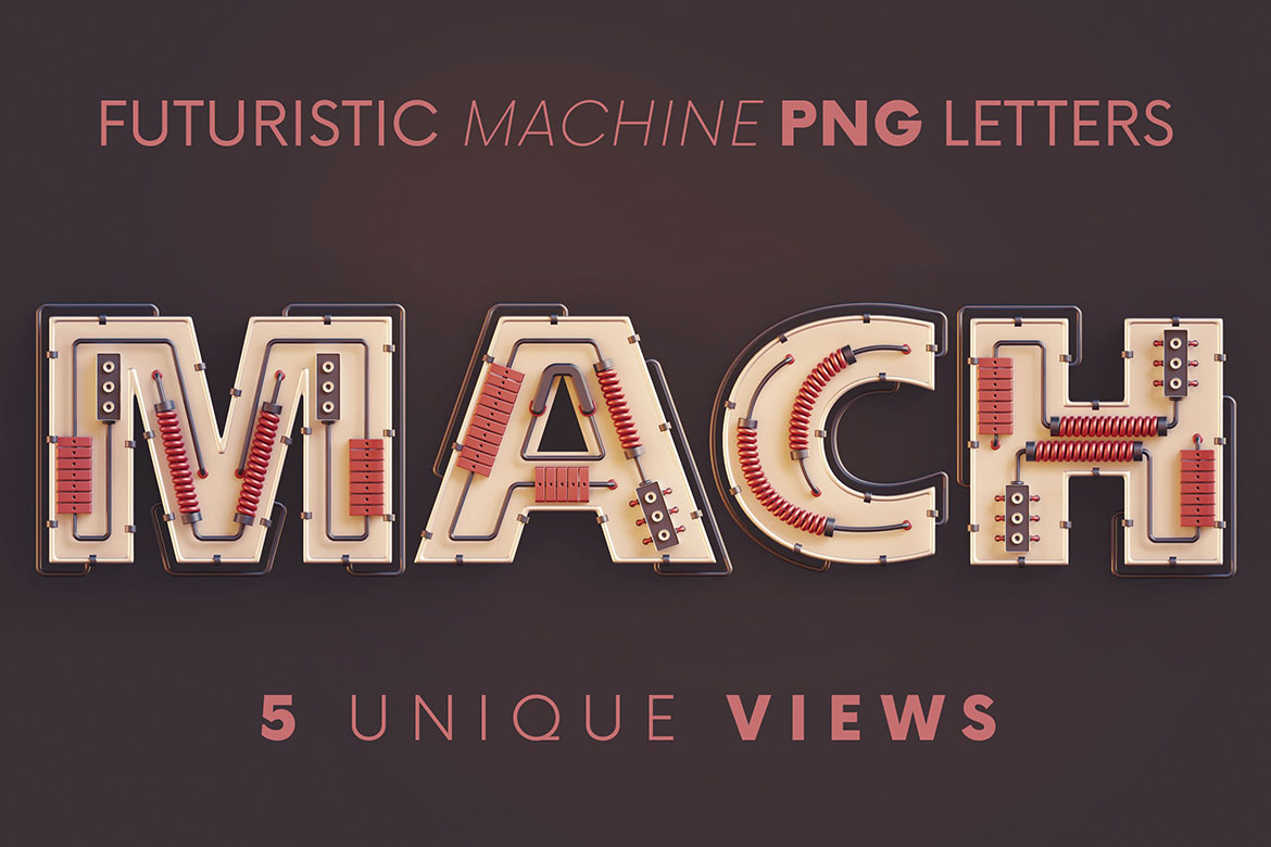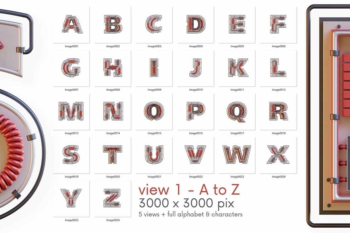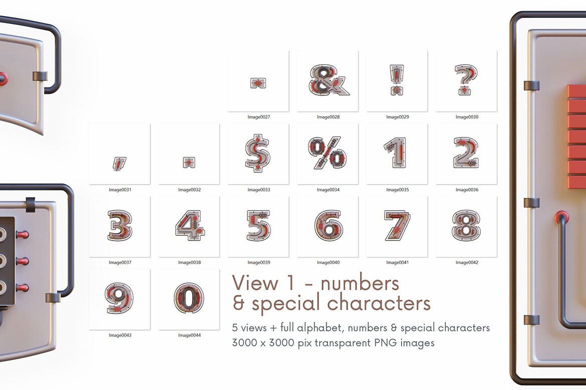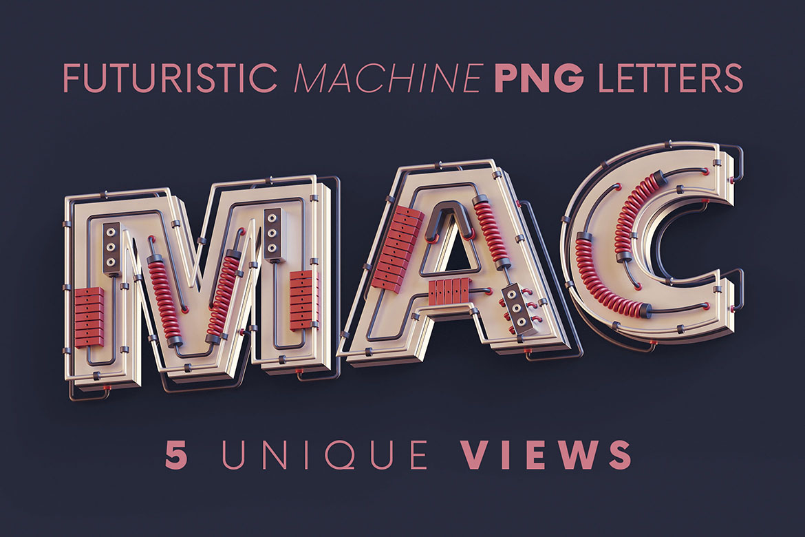 - 12 creative 3D lettering sets (transparent PNG) – all with creative, industrial, futuristic, retro & funny theme 🙂