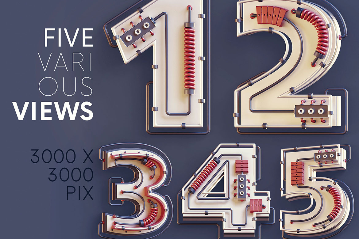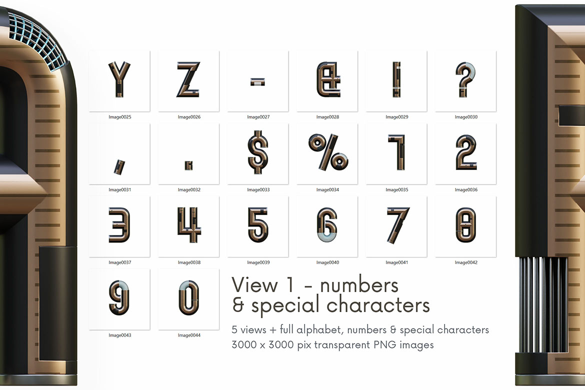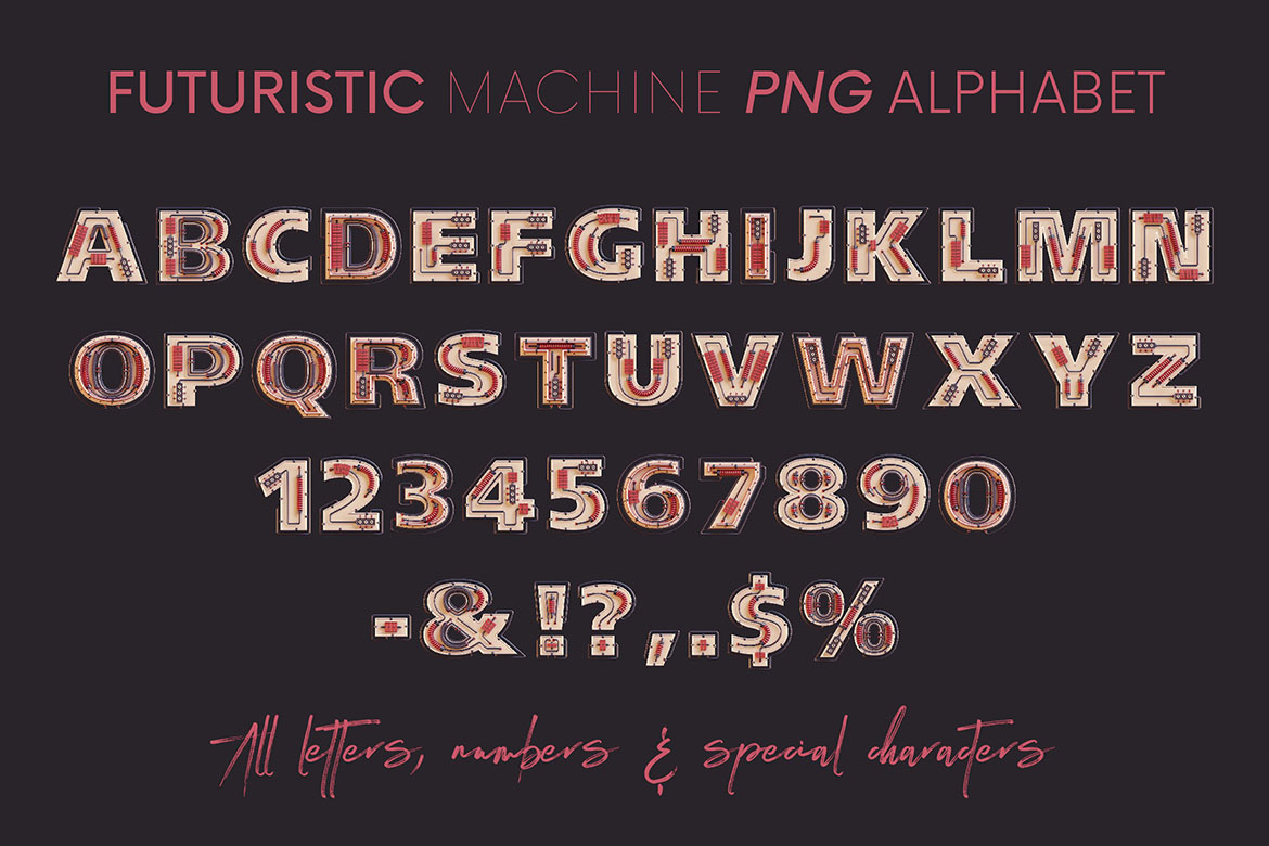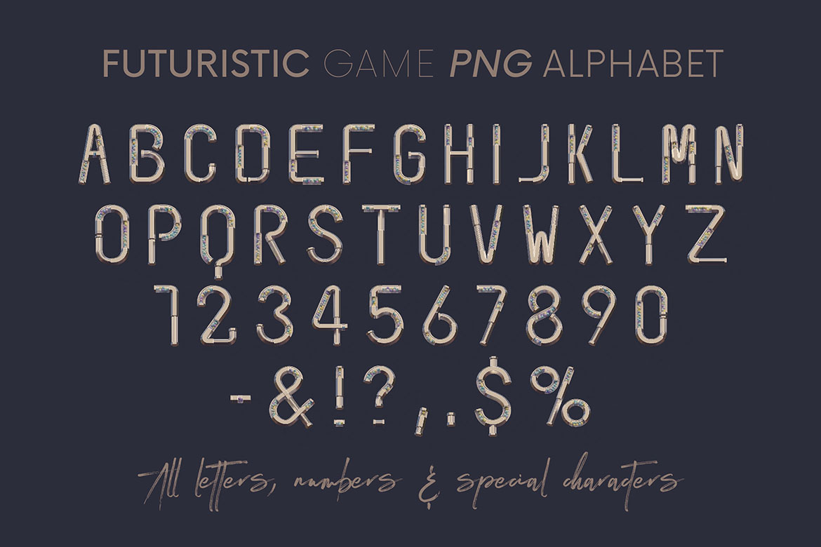 - 12 creative 3D lettering sets (transparent PNG) – all with creative, industrial, futuristic, retro & funny theme 🙂