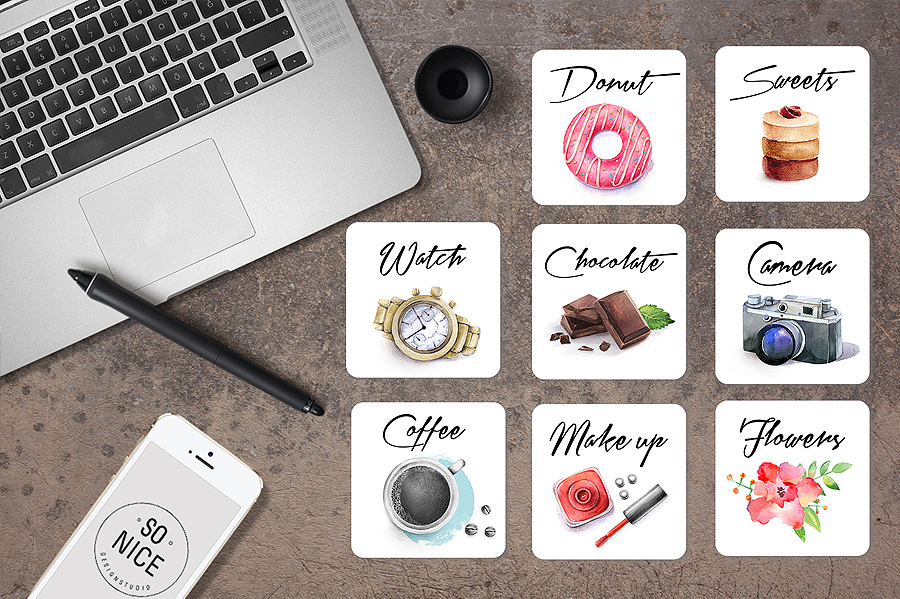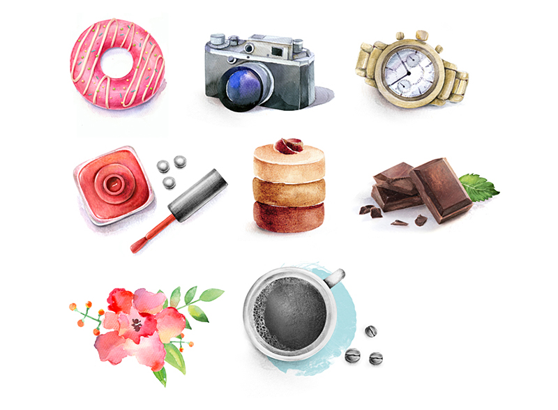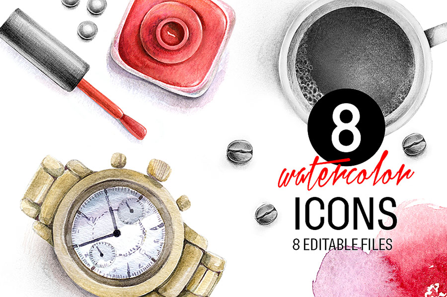 4. Set of watercolor icons by SoNice