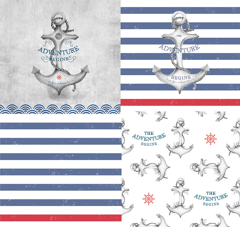 Set of nautical badge and patterns ( 8 images). The adventure begins ( nautical images). It can be used as a design of greeting cards, posters, notebooks and t-shirts and so on. You will get: 2 JPEG patterns (3700×3400 px, 400 dpi), 1 PNG image of anchor (2700×3350 px, 400 dpi), 2 JPEG images of anchors (2700×3350 px, 400 dpi), 1 seamless pattern (2328×2331 px, 300 dpi), 1 JPEG image of anchor on concrete background (4466×4166 px, 300 dpi).