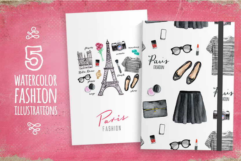 Hand drawn watercolor fashion illustration inspired by Paris. It can be used as a design of t-shirts, greeting cards, posters, notebooks, badges and so on.