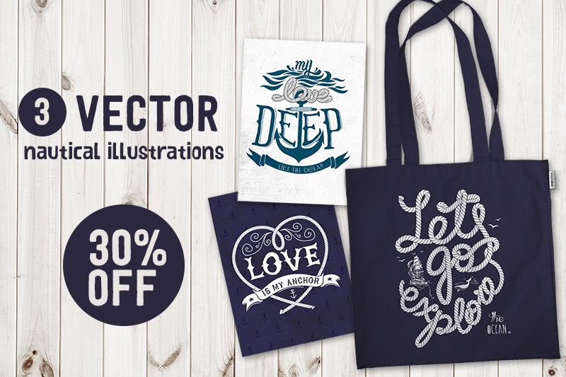Set of 3 nautical illustrations hand drawn in vector. It can be used as a design of greeting cards, posters, notebooks and so on. You will get: 3 EPS10 vector images.