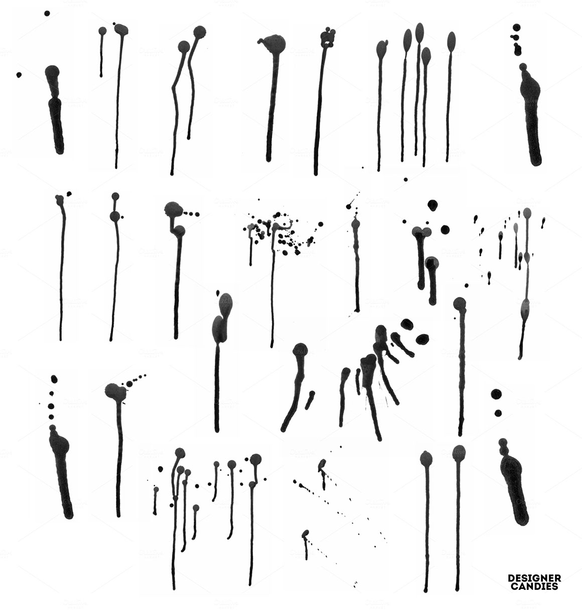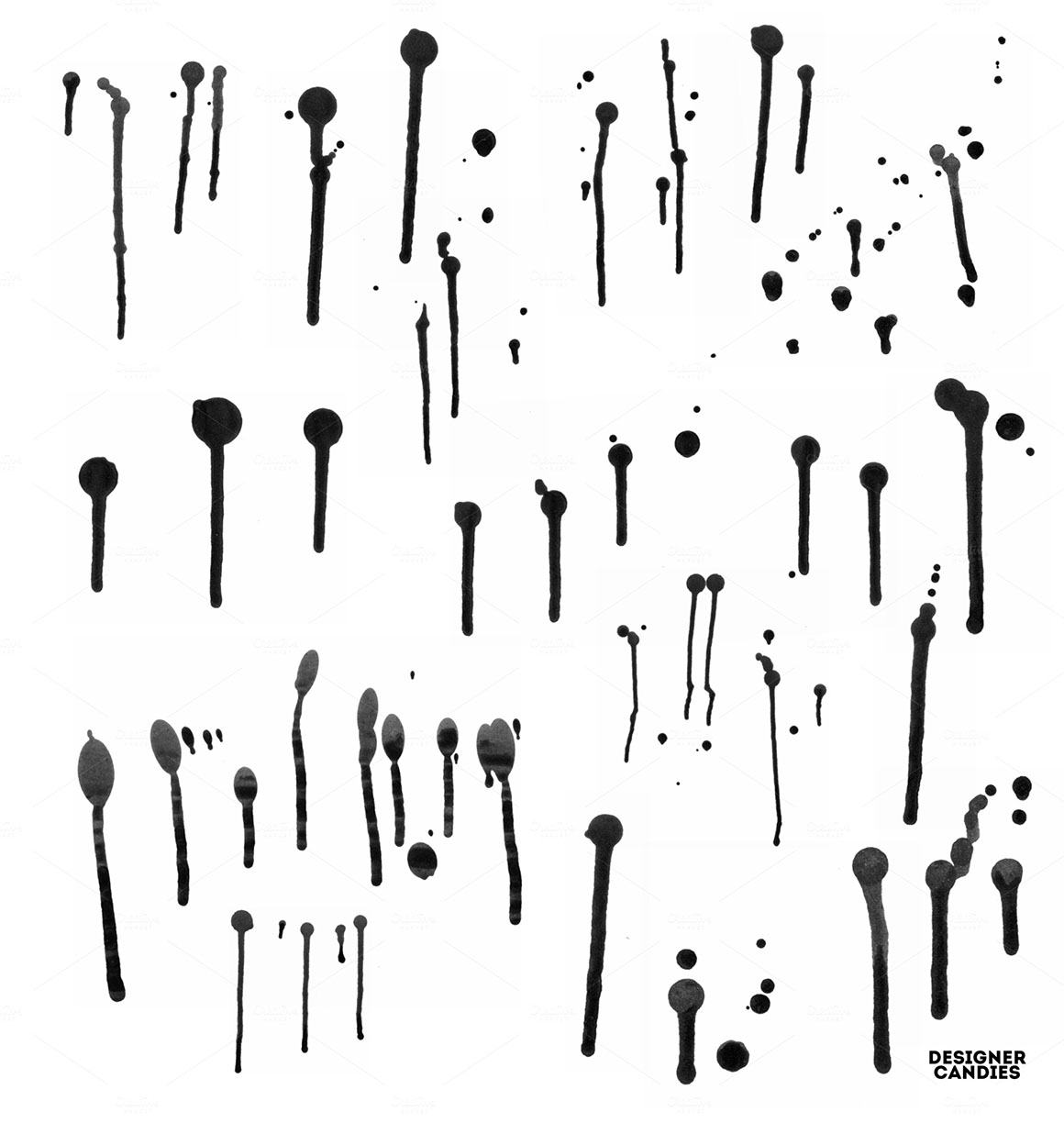 Add a touch of Jackson Pollock to your design work with these brilliant and realistic dripping-paint brushes for Adobe Photoshop. Included in this set are 40 high resolution paint drips that have been meticulously crafted by hand and transferred to the digital canvas.