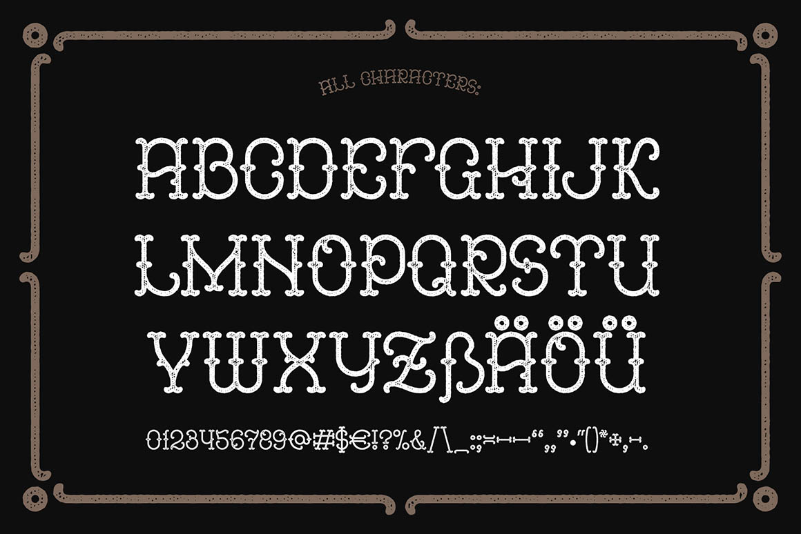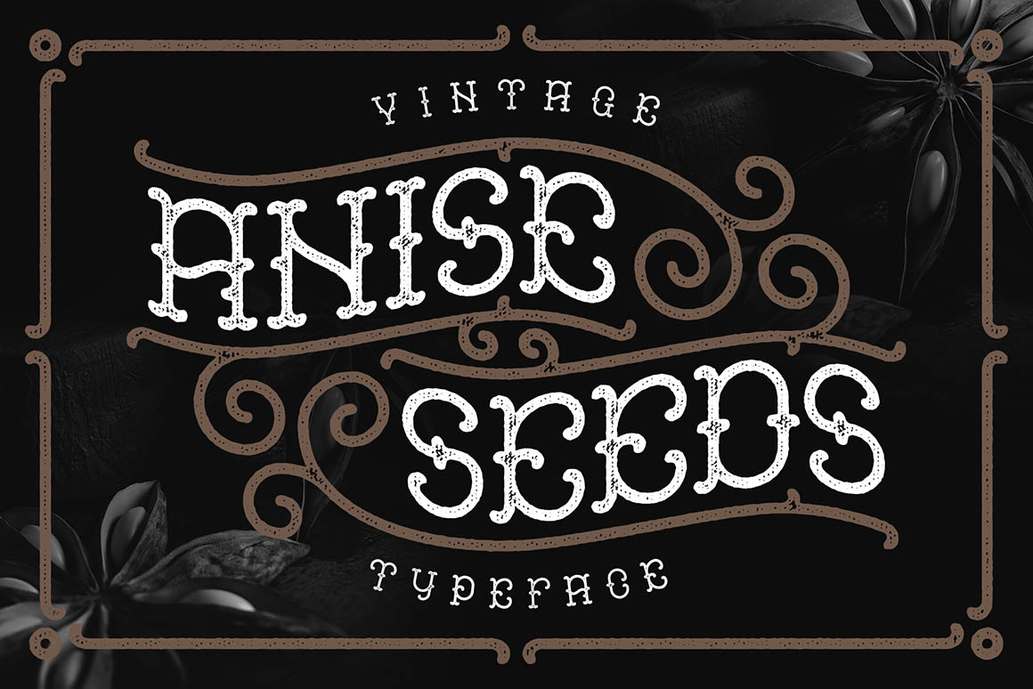 Hi, introducing a vintage typeface named “Anise Seeds”. It includes two versions – textured rough and smooth clean. Also it comes with useful vector files: editable .ai and .eps templates with decorative ornate frame.