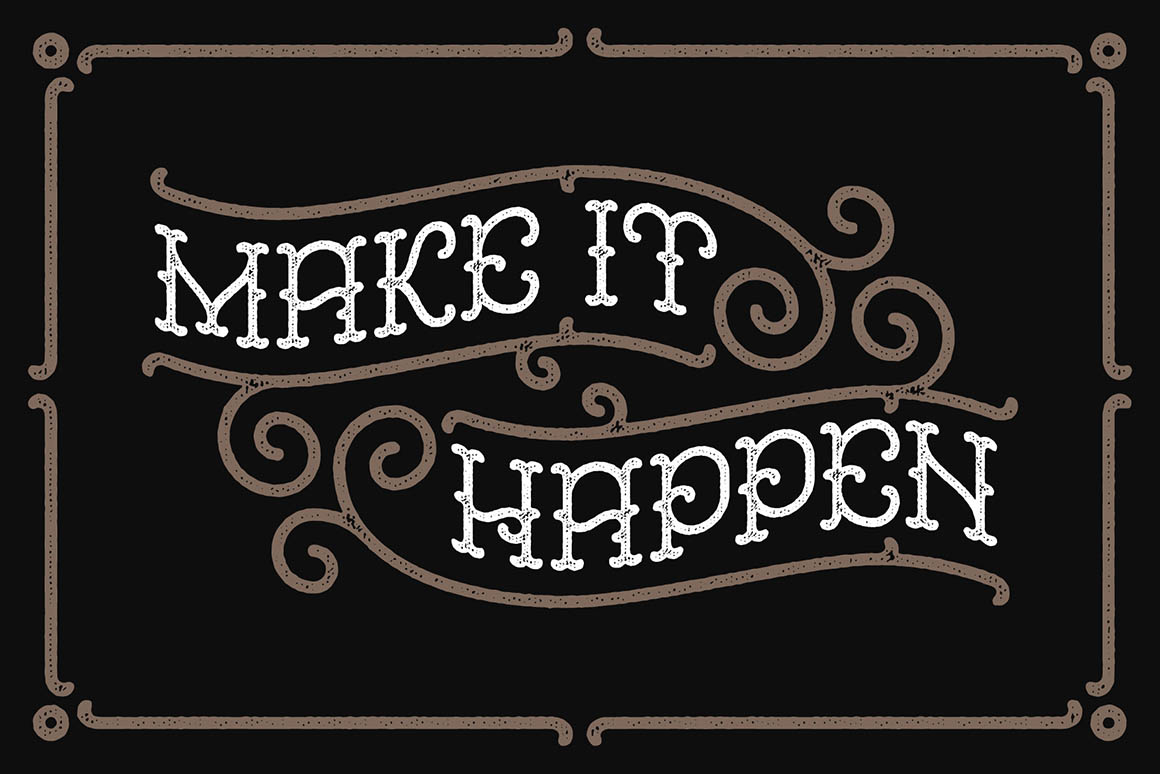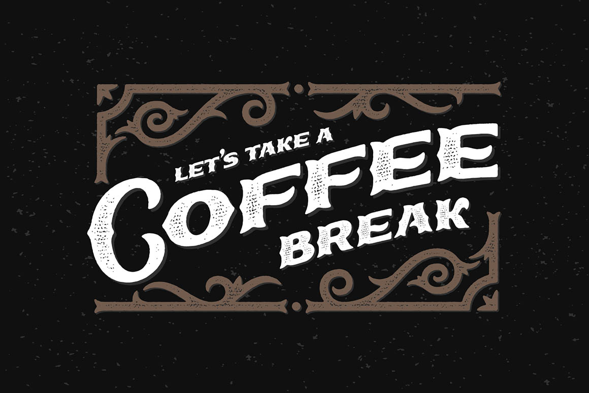 Hello! Presenting a vintage steam-punk look font named “True Black”. It has clean and textured rough versions. Also you will get a vector bonus with decorative ornate. Inside you will find a vector poster with lettering composition “Let’s take a coffee break”.