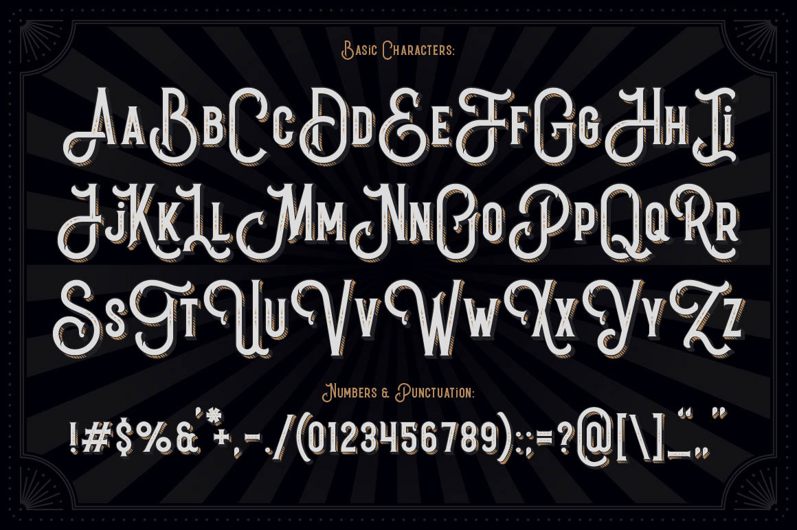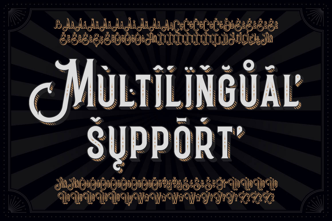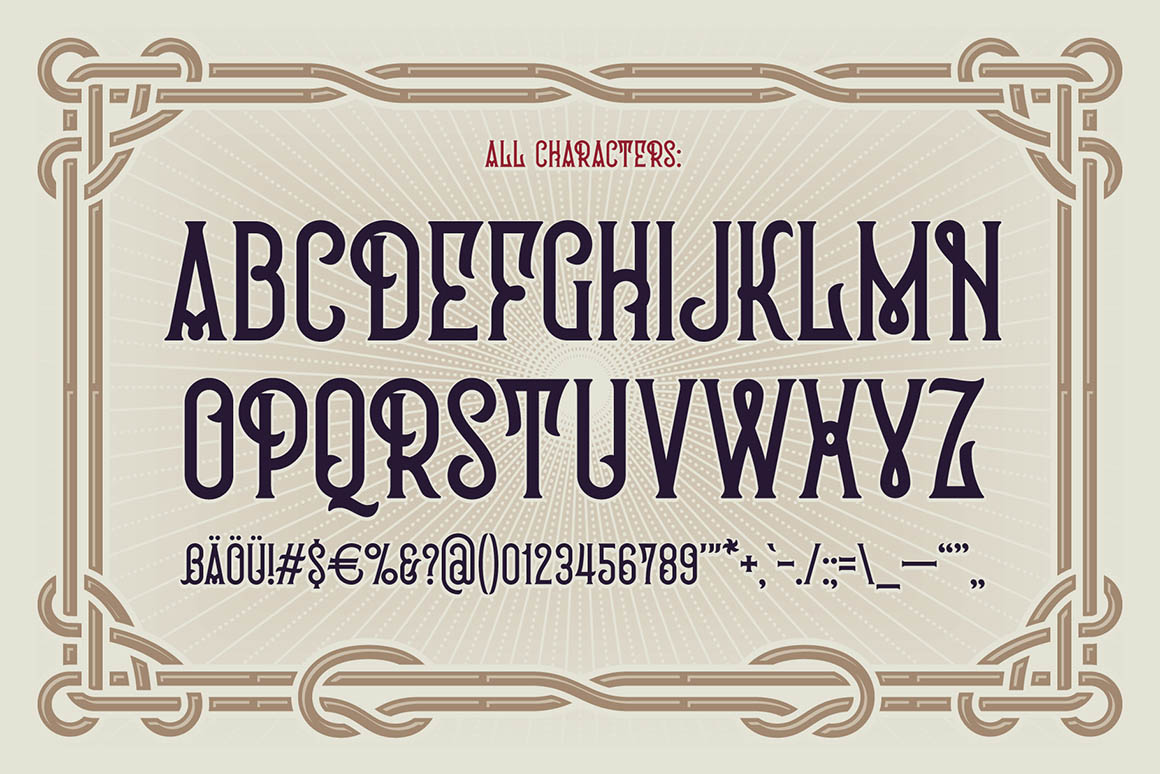Hi! Presenting vintage style typeface “Black Queen”. It includes different font files for each decorative element, that can be useful for manipulating with colors and effects. Black Queen font has multilingual support and several laternative letter glyphs (all characters you can see on 4-6th screenshots). Also as a bonus you will get a vector illustration of a queen and a label template (3rd screenshot).