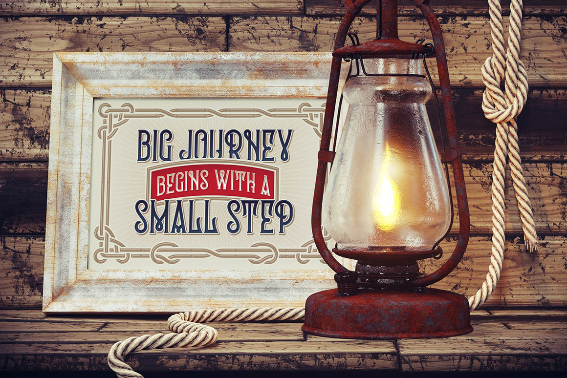 Hi! Presenting a vintage typeface named “Fisherman’s Knot”. It’s style inspired by boating knots and old graphics heridage. This set also includes an editable vector template with beautiful ornate design (4th screenshot). Also you will get a psd mockup with old oil lamp and wooden frame with replaceable art inside.