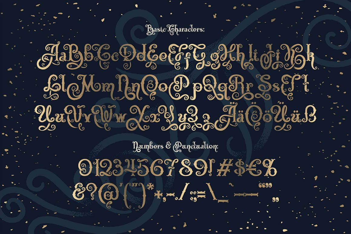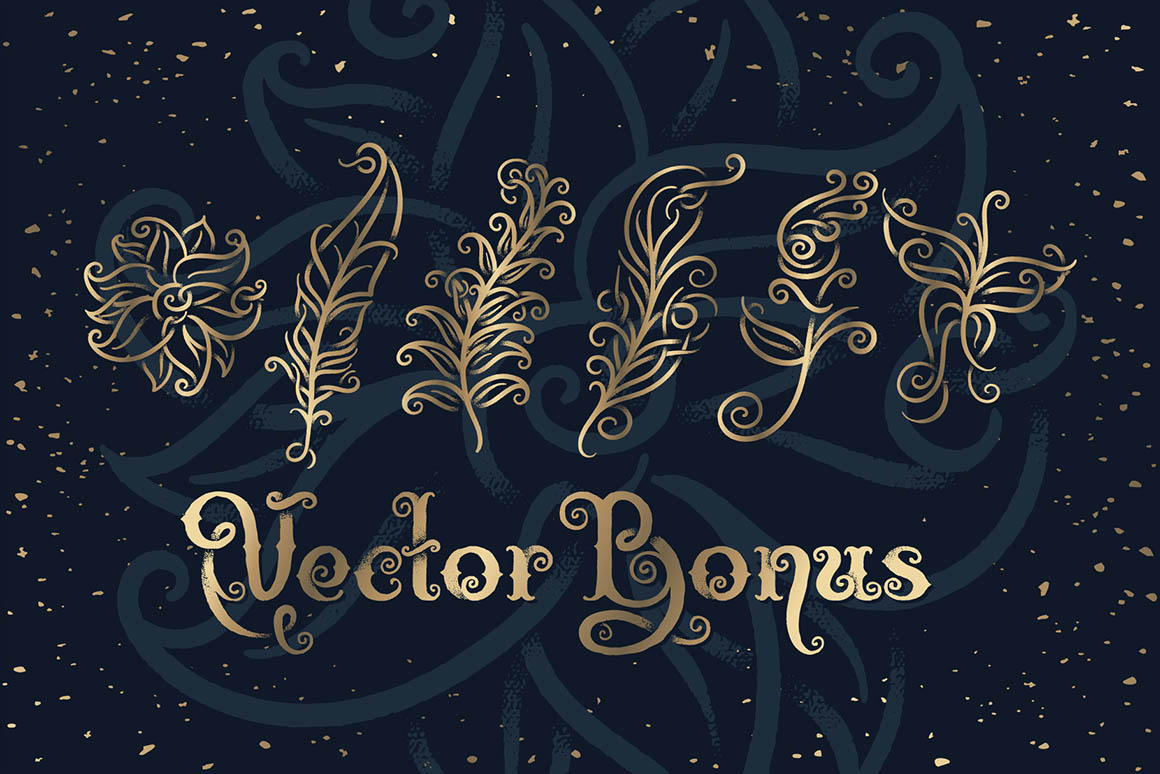 Hi! Introdusing a decorative typeface named “Magic Garden”. It has a beautifull swirls and textured grain effect that brings a fairy tale mood to it. Also included a nice bonus with 6 vector illustrations of stylized nature objects (5th screenshot). All available font characters you can see on the 6th screenshot.