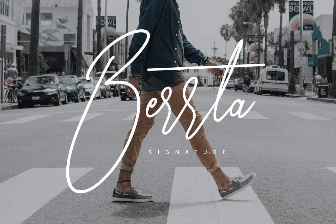 Give your designs an authentic handcrafted feel. “Berrta Signature Font” is perfectly suited to signature, stationery, logo, typography quotes, magazine or book cover, website header, clothing, branding, packaging design and more. Included Stylistic Alternates & Ligatures.