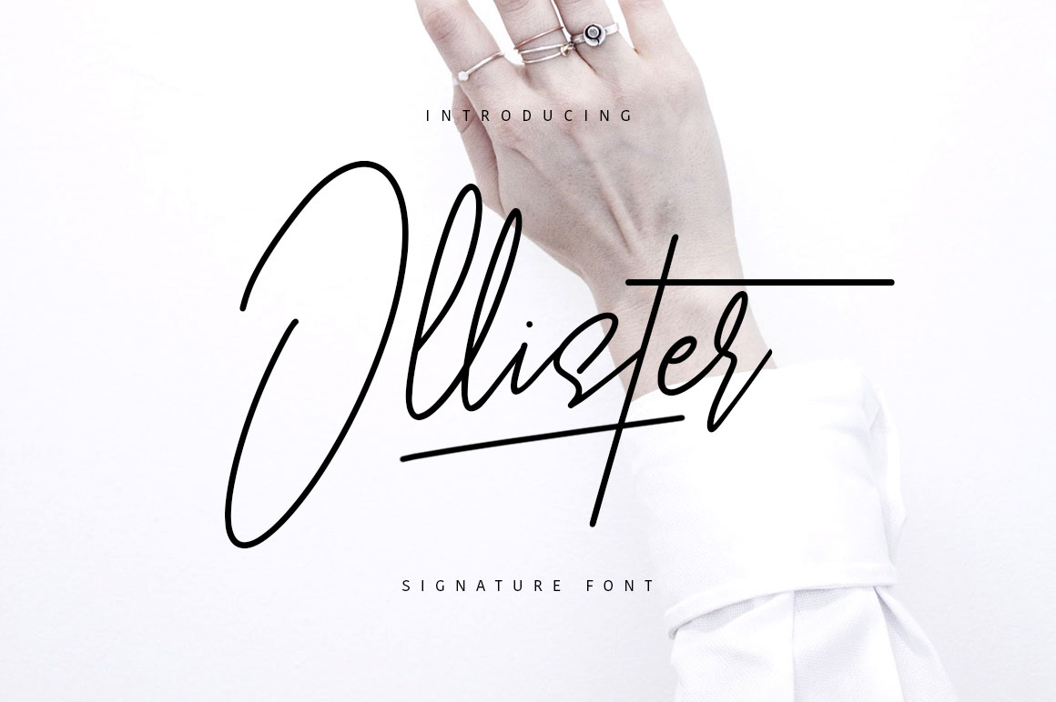 Give your designs an authentic handcrafted feel. “Ollister” is perfectly suited to signature, stationery, logo, typography quotes, magazine or book cover, website header, clothing, branding, packaging design and more. Included Alternates and Ligatures.