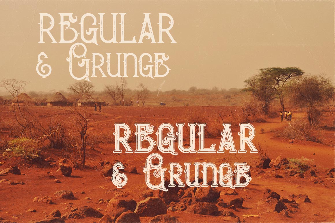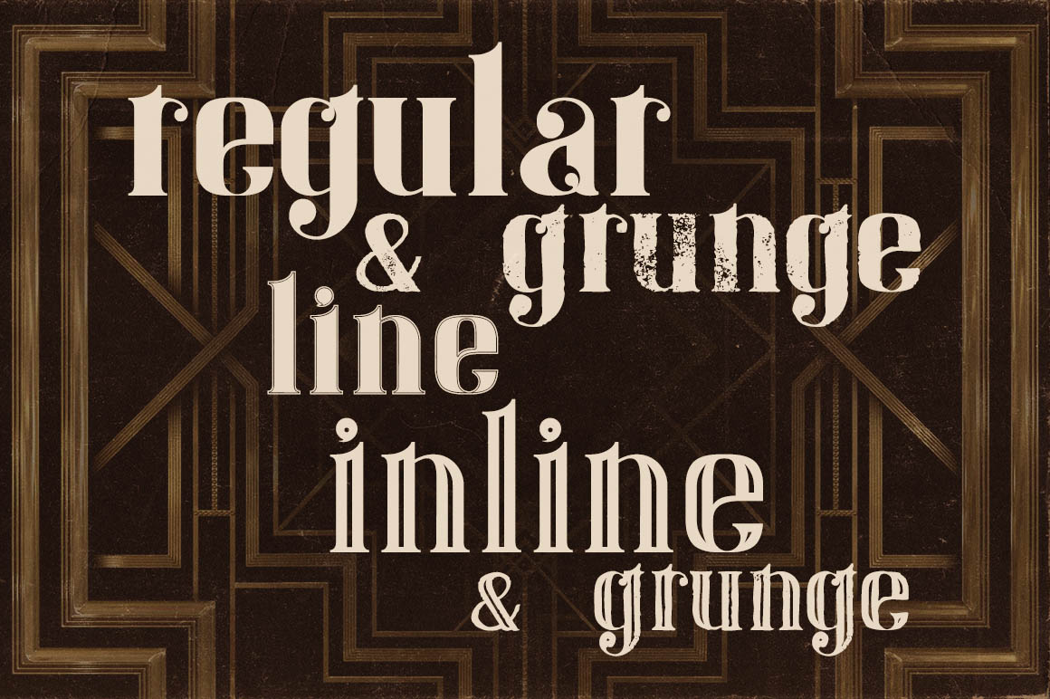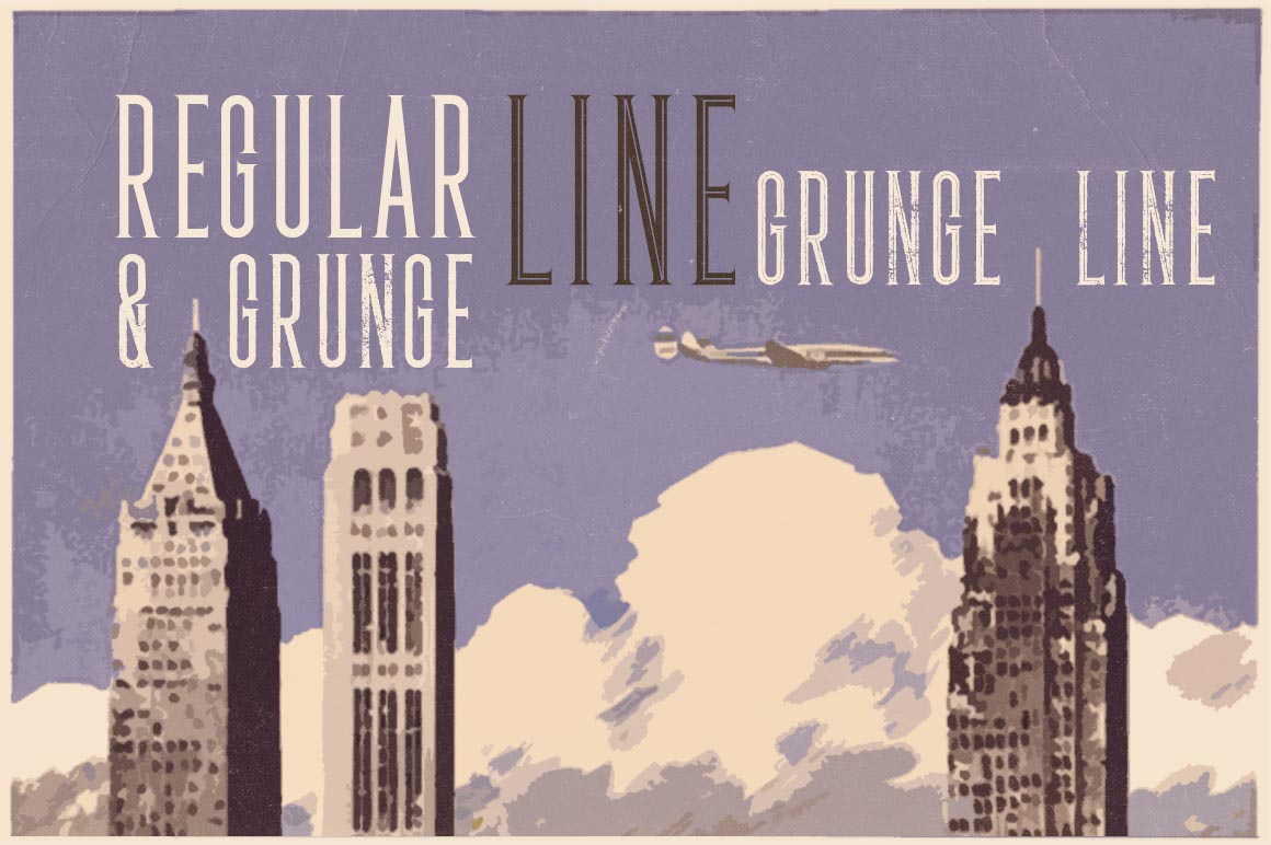 Unique vintage style custom font with 4 styles: regular and grunge, line & line grunge