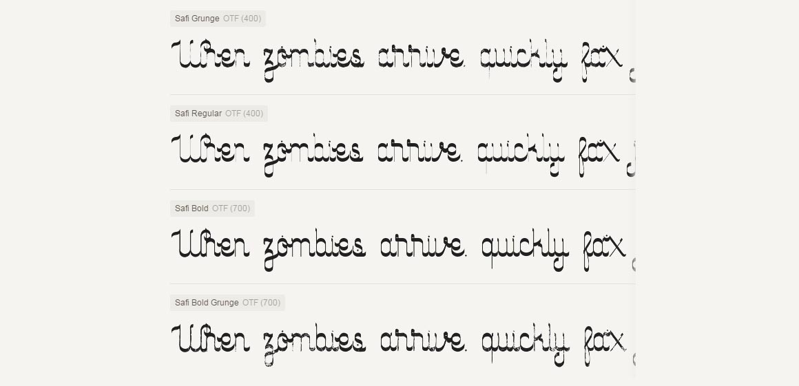 - TTF, OTF formats – 4 fonts: (regular & gurnge, bold & bold gurnge)
