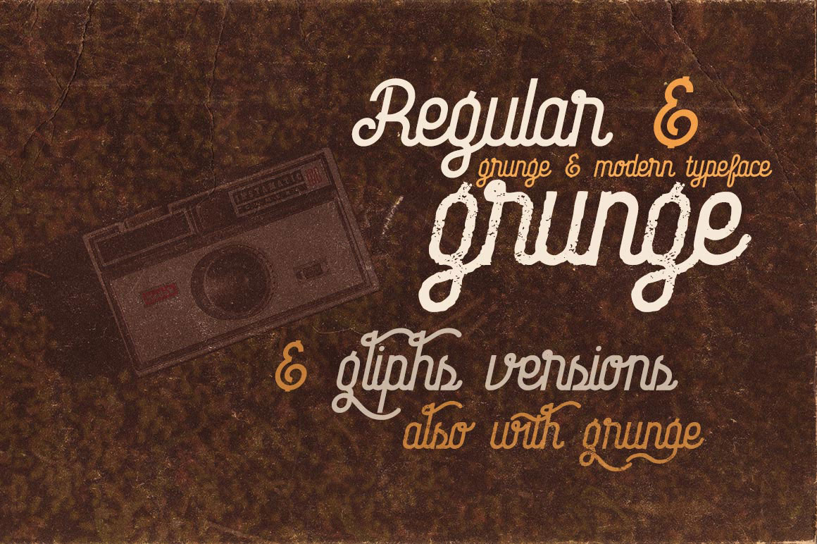 Modern and also vintage style script font with 2 styles: regular and grunge
