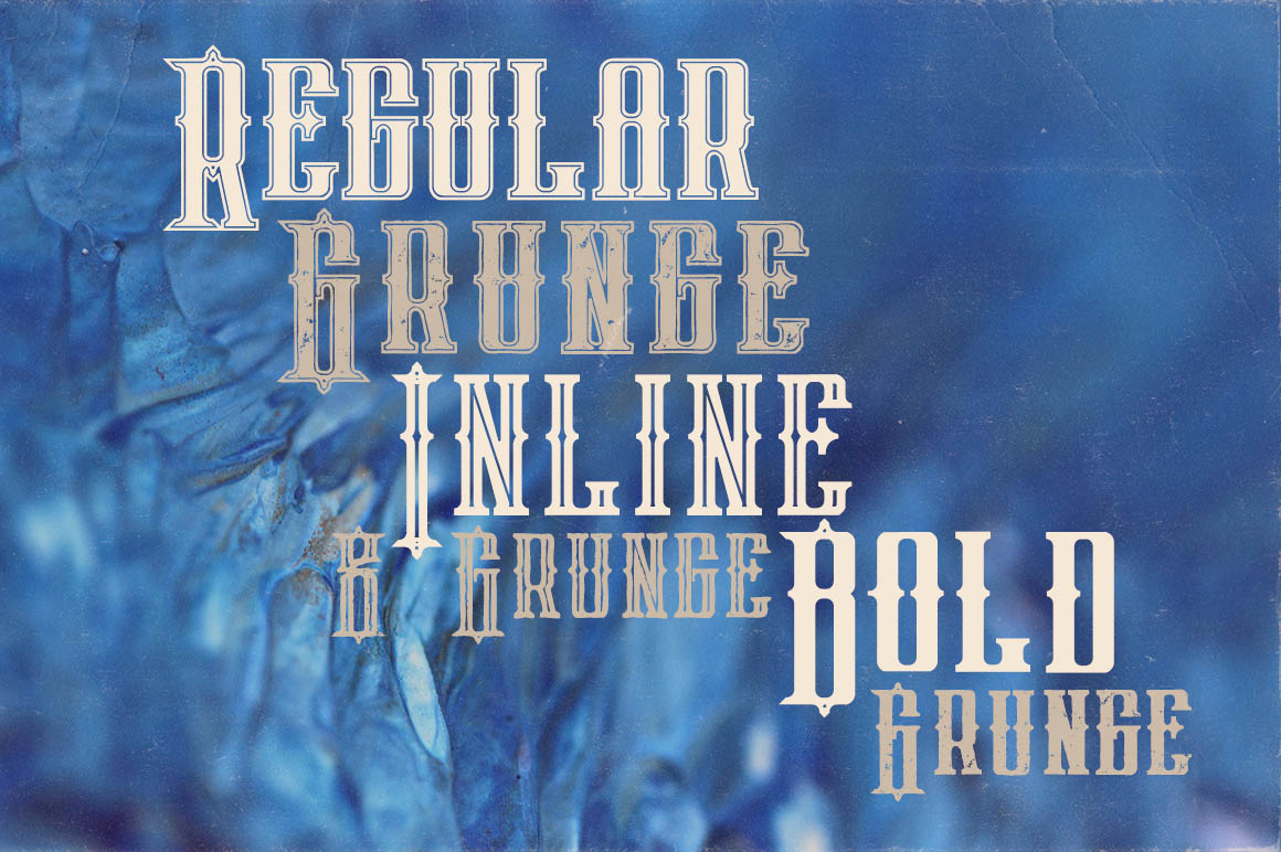 - 5 font files (otf & ttf) – regular & grunge, inline & inline grunge, outline