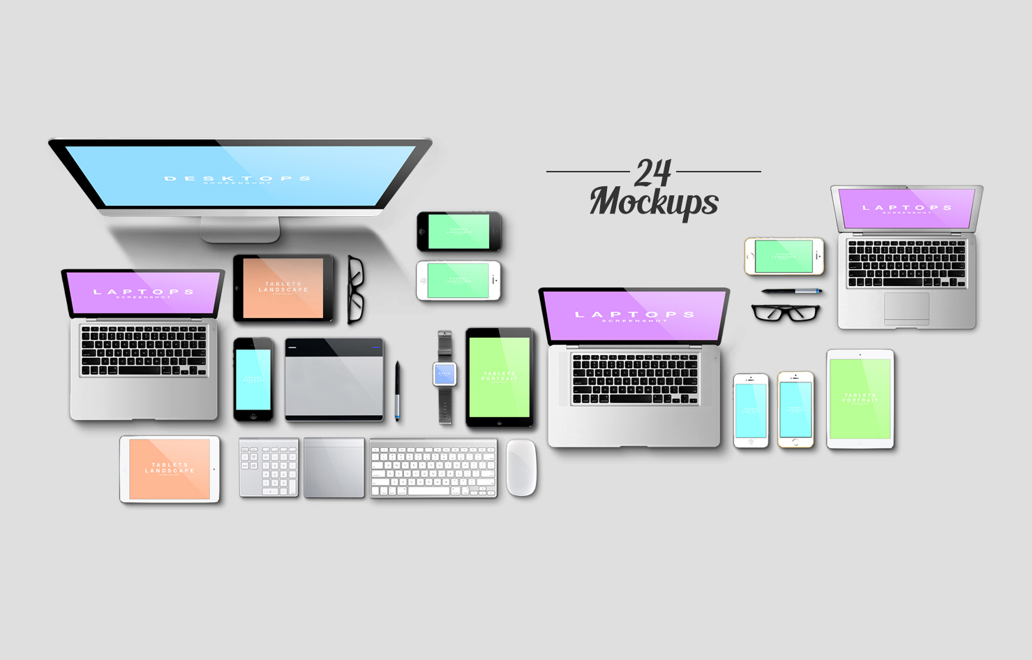 This Device Mockups allows you to quickly display your designs and layouts into a digital device showcase. This pack contains 24 mockups. Smart-layers allow rapid replacement of screenshots. Once you update the smart-layer, all devices running that screenshot are instantly updated! Video Tutorial: http://youtu.be/2DBB6d96V88