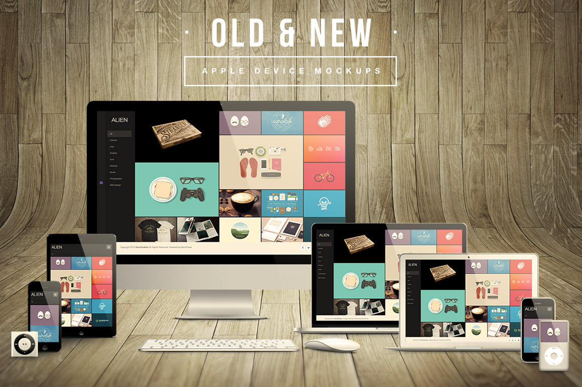This Old & New Apple Device Mockups allows you to quickly display your designs and layouts into a digital device showcase. Smart-layers allow rapid replacement of screenshots. Once you update the smart-layer, all devices running that screenshot are instantly updated! This pack contains 29 mockups. In the single PSD file comes all original devices, along with 10 made examples. Cropping, changing perspectives and layer masking are not needed. Simply pop in your new screenshot and everything is automatic.