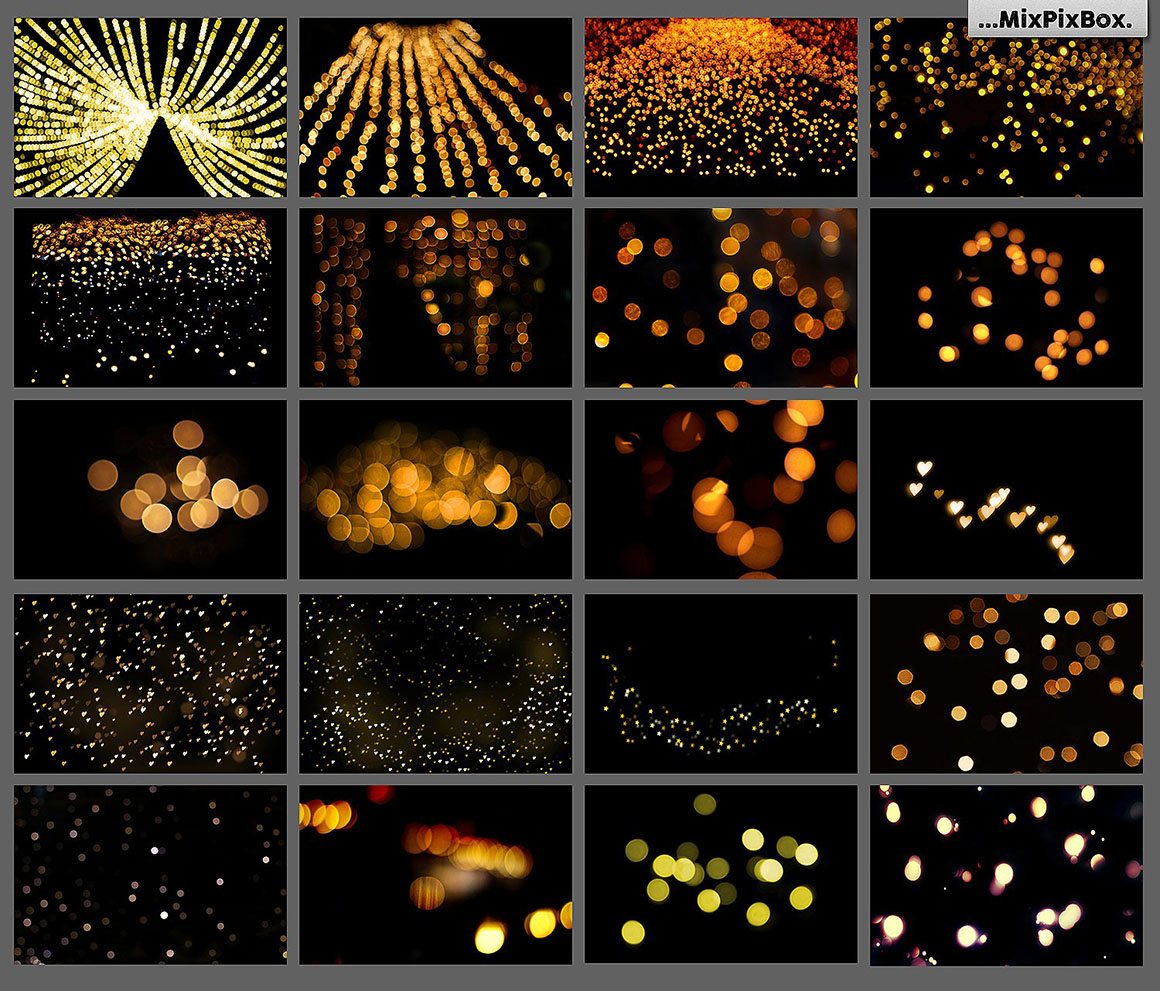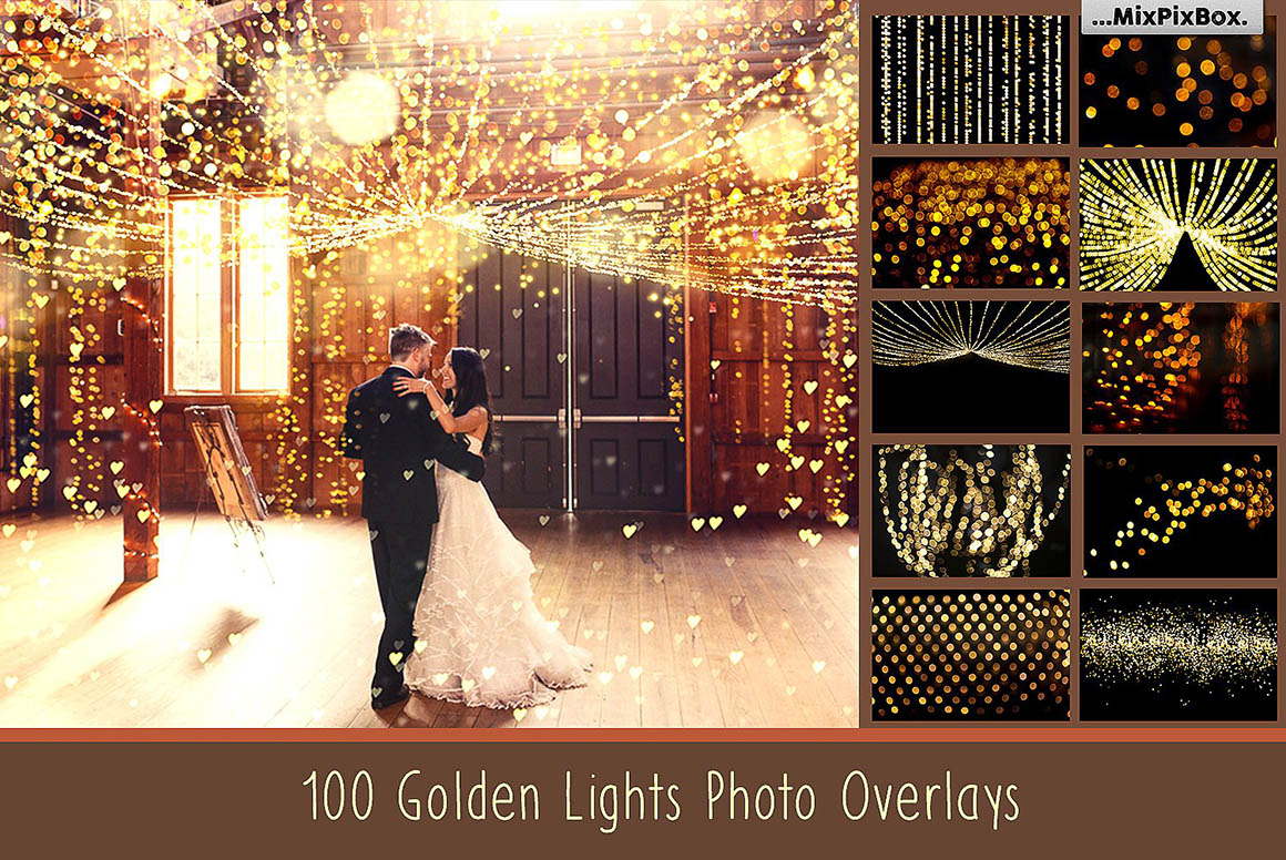 01. 100 Golden Lights Photo Overlays by MixPixBox