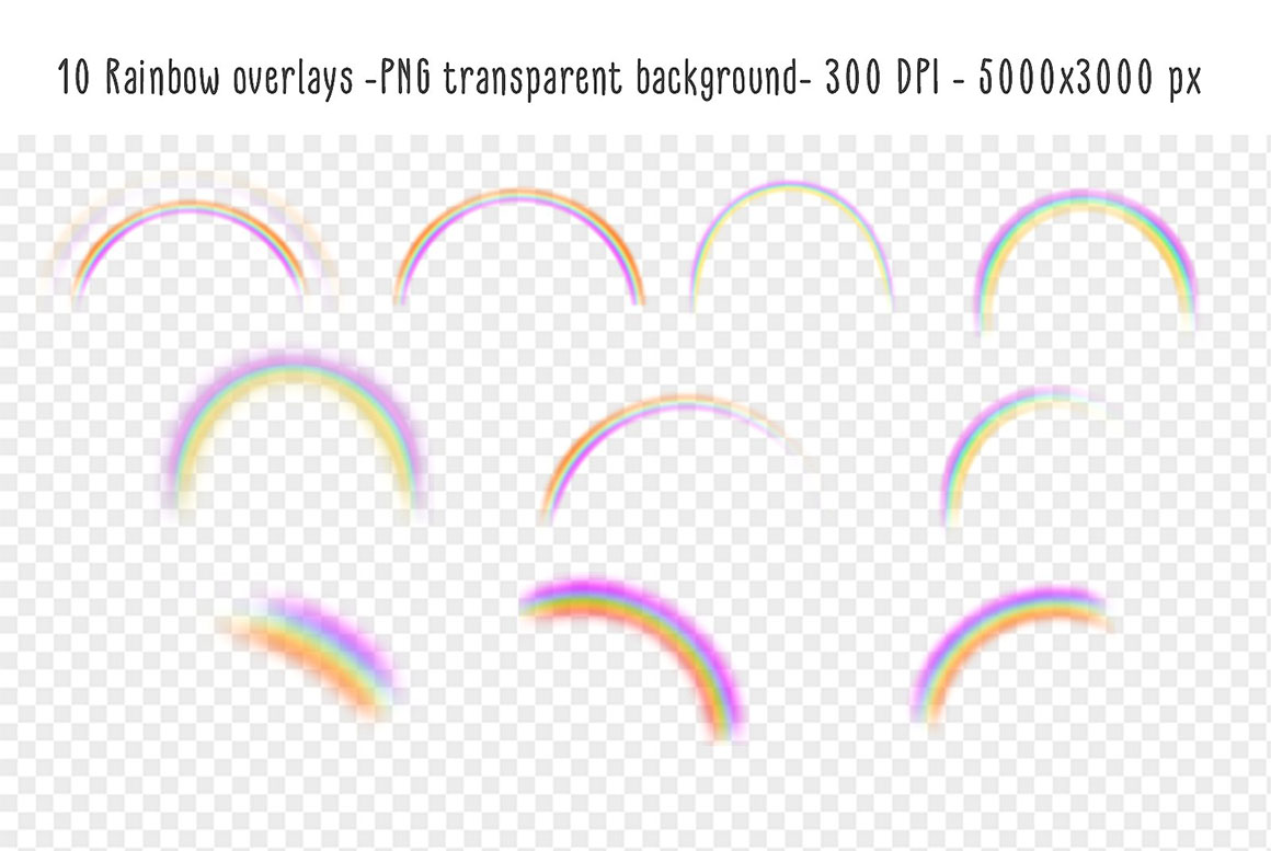 - 10 Rainbow overlays in PNG format with transparent background 5000×3000 px – 300 DPI