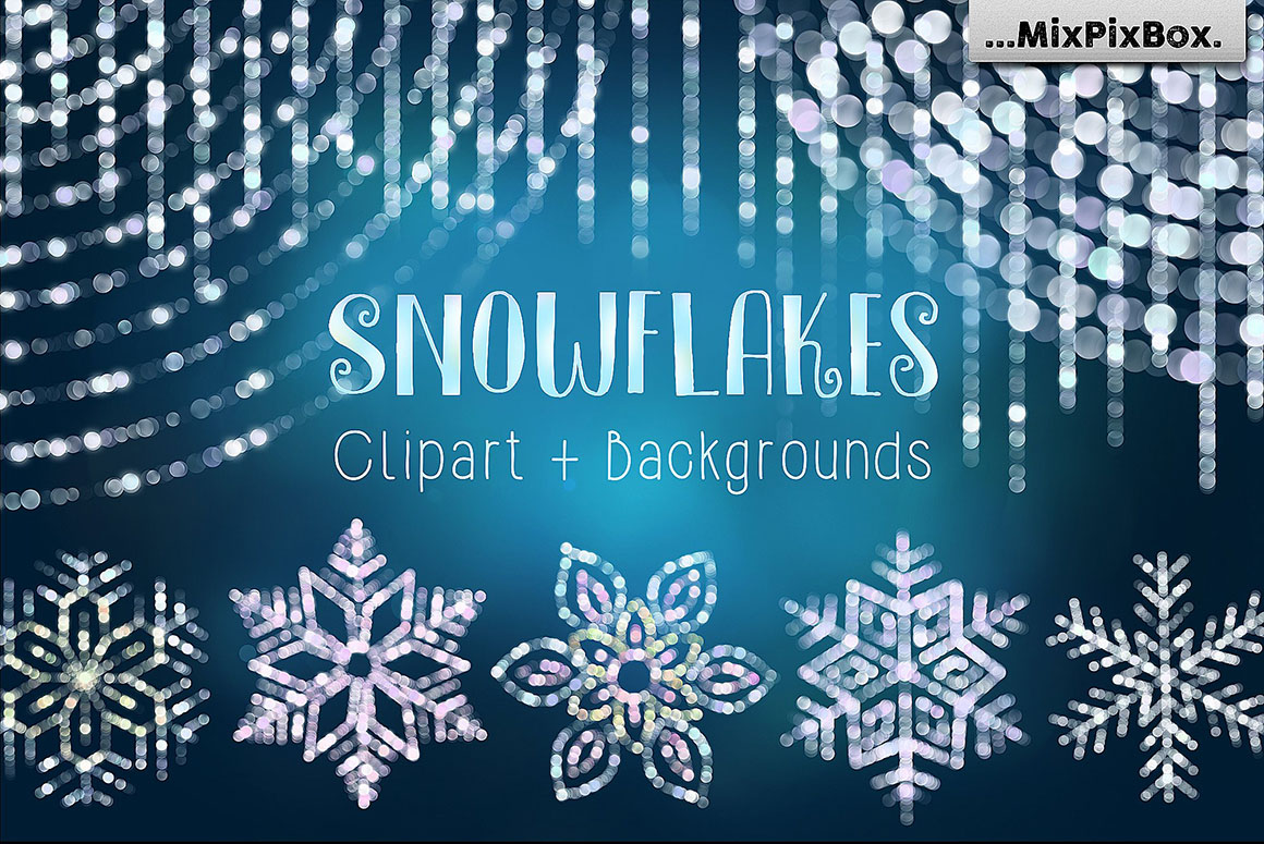 06. SNOWFLAKES Clipart + Backgrounds by MixPixBox