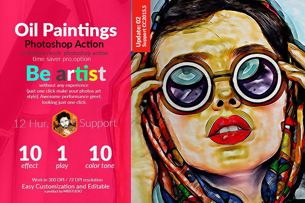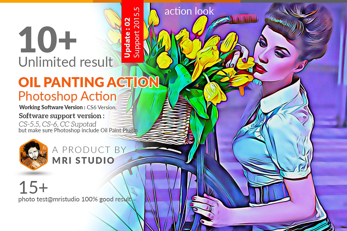 Working Software Version : CS6 Version. Software support version : CS5.5,CS6,CC 2014, Version. (but make sure Photoshop include Oil Paint Plugin , simply go window menu and chick filter Oil Paint Plugin, if not include Oil Paint Plugin than this action not working properly )