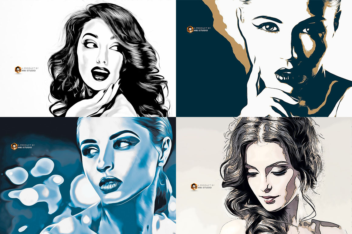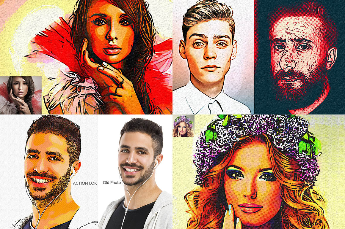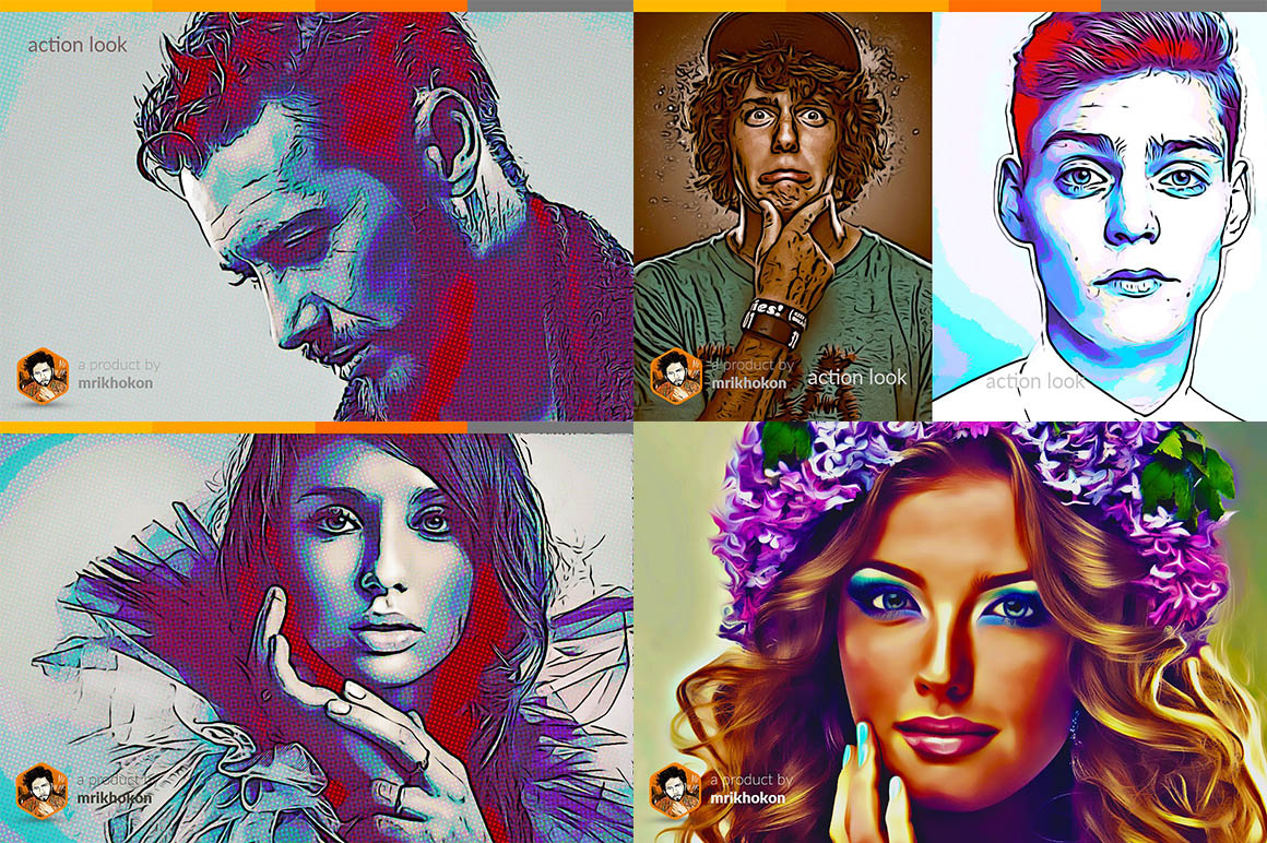 All these amazing Photoshop photography actions are from mristudio and ready for your new print or web graphic design! You can convert your images to cartoon art, paintings or vintage art in seconds!