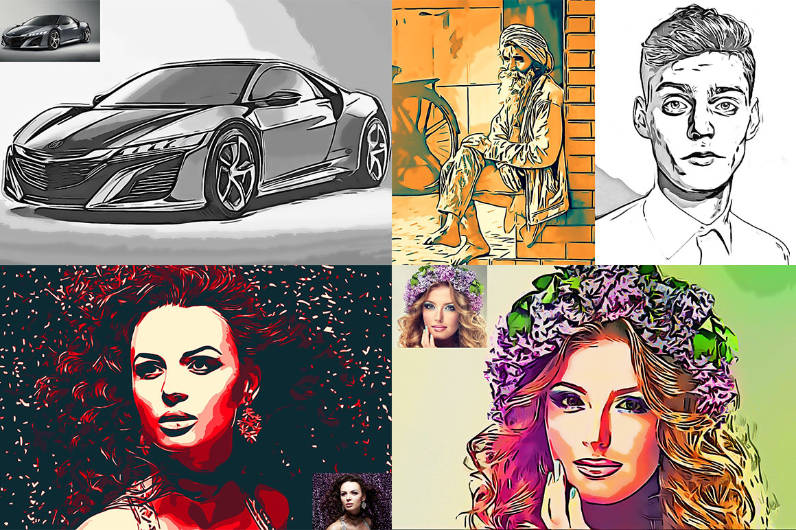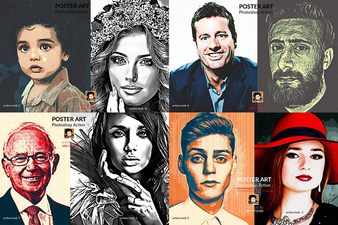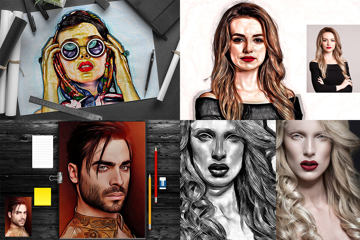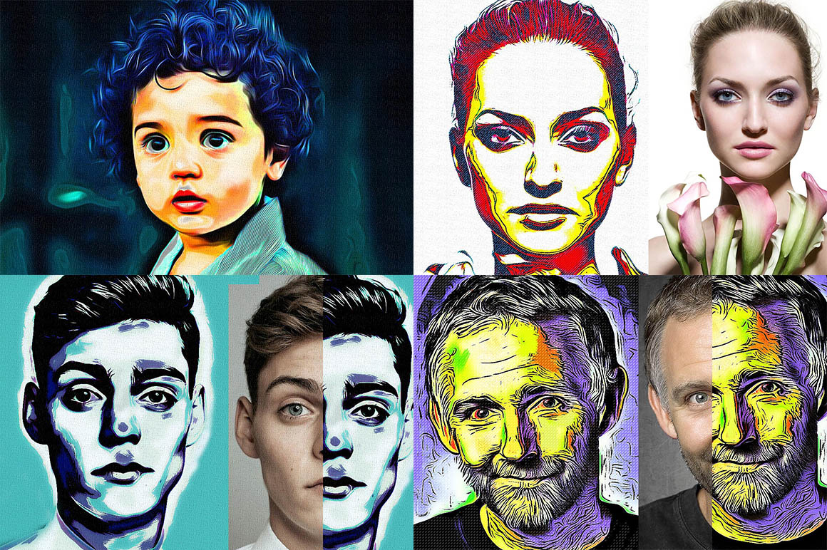 All these amazing Photoshop photography actions are from mristudio and ready for your new print or web graphic design! You can convert your images to cartoon art, paintings or vintage art in seconds!