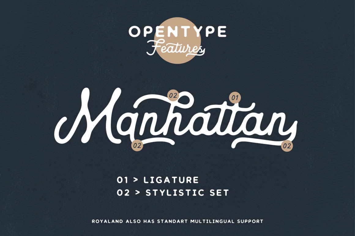 - Opentype Features such as Standard Ligature, Contextual Alternates and Stylistic Set (ss01 – ss07).