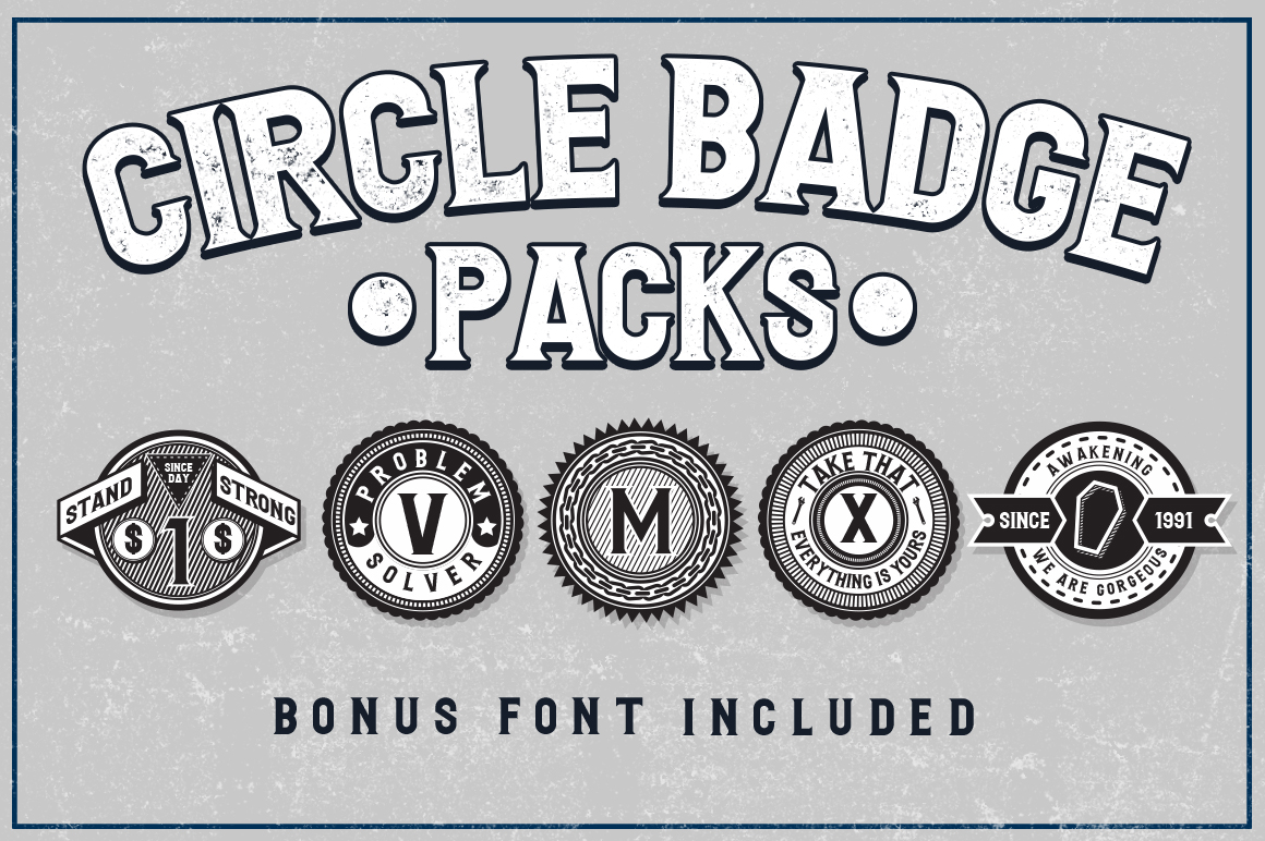 Unique collection of vinatge vector badges, handcrafted textures and amazing custom fonts from Ian Irwanwismoyo.