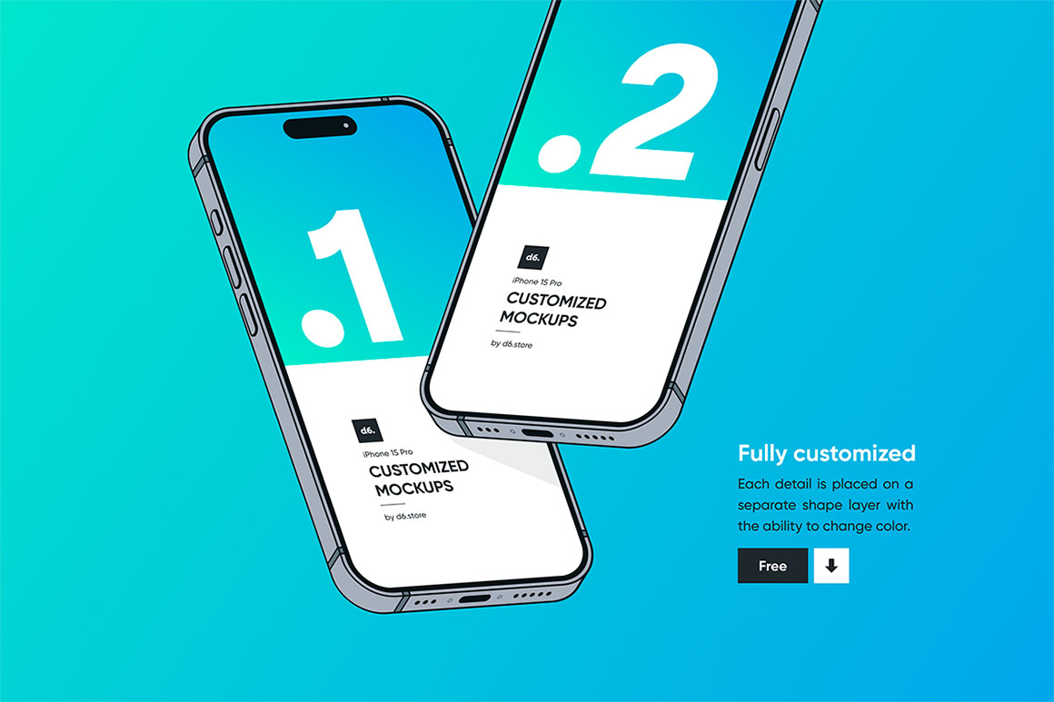 Customized iPhone 15 Pro mock-up template for Adobe Photoshop from d6.store. Download & enjoy 😉