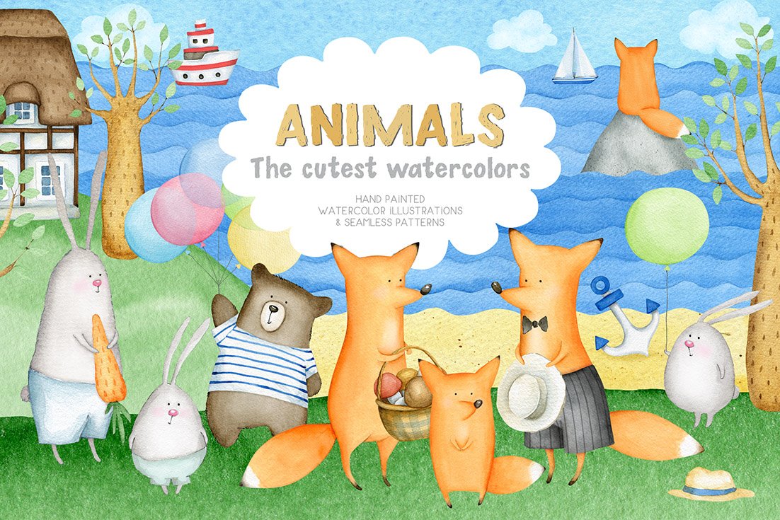 Need some cute, happy & funny style animal illustration or graphic set for your new web or print project? Whatever the case, this amazing watercolor illustration or artistic graphics bundle with lot of handdrawn illustrations, graphic elements, compositions & patterns is great source for all print or branding designers…. These graphics are in hi-res PNG or JPG image format so all are great for your new web design or any print design projects. Enjoy 😉