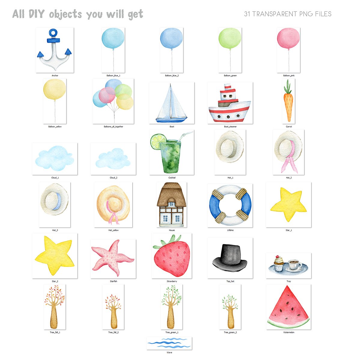 - DIY objects: 31 PNG (from 1360 to 6383 px)