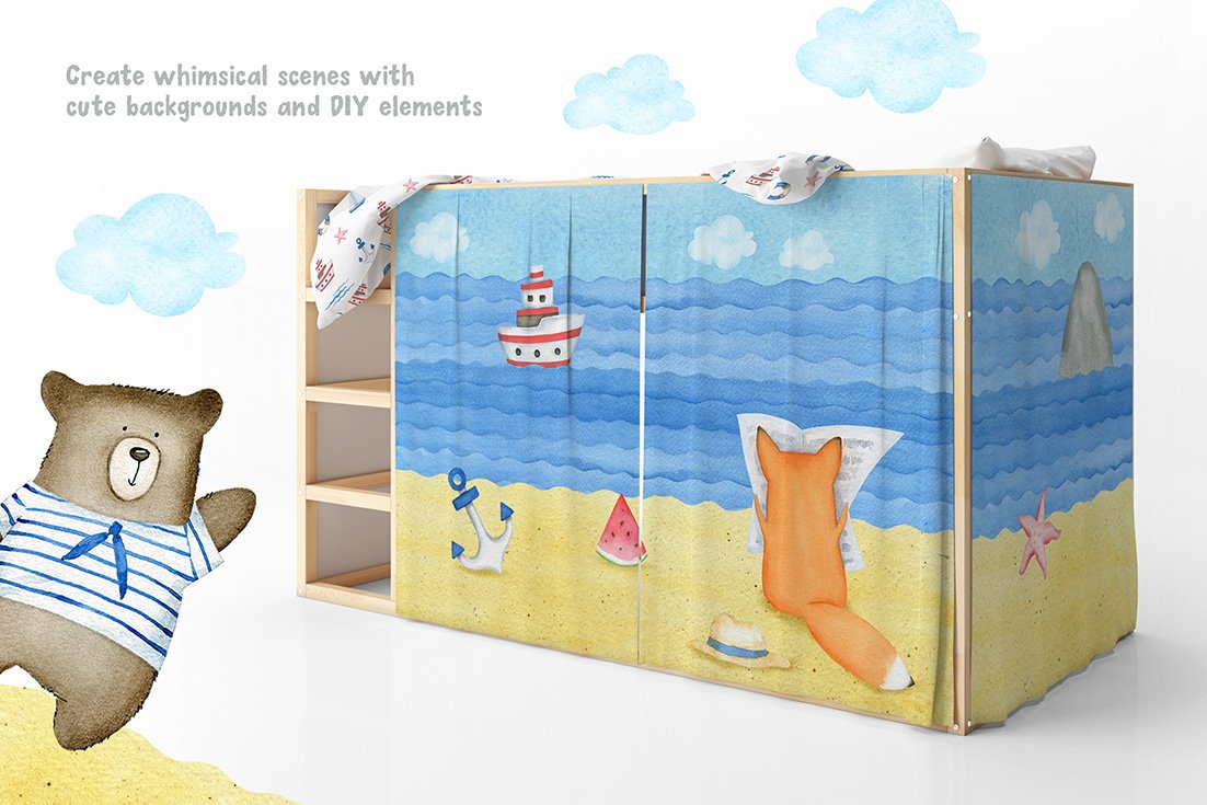 I’m really delighted to introduce to you this adorable whimsical watercolor collection. Create your personal or business projects with cuties like bunnies, bears and adorable foxes. Floral elements are also included. Create whimsical scenes with cute backgrounds and DIY elements. Take a look at the magical seamless patterns too – so many possibilities! All files are high-resolution (300 dpi). PNG files are transparent. You will also get a layered PSD file (with 4 pre-made cute cards). All the cards are in one file. Open the file in the program Adobe Photoshop, remove the white top layer, turn layers ‘on’ and ‘off’ and arrange elements to change the composition if you wish. The cards are available in PNG or Jpeg format as well. They come with and without text. 185 PNG, 25 JPEG, 1 PSD files