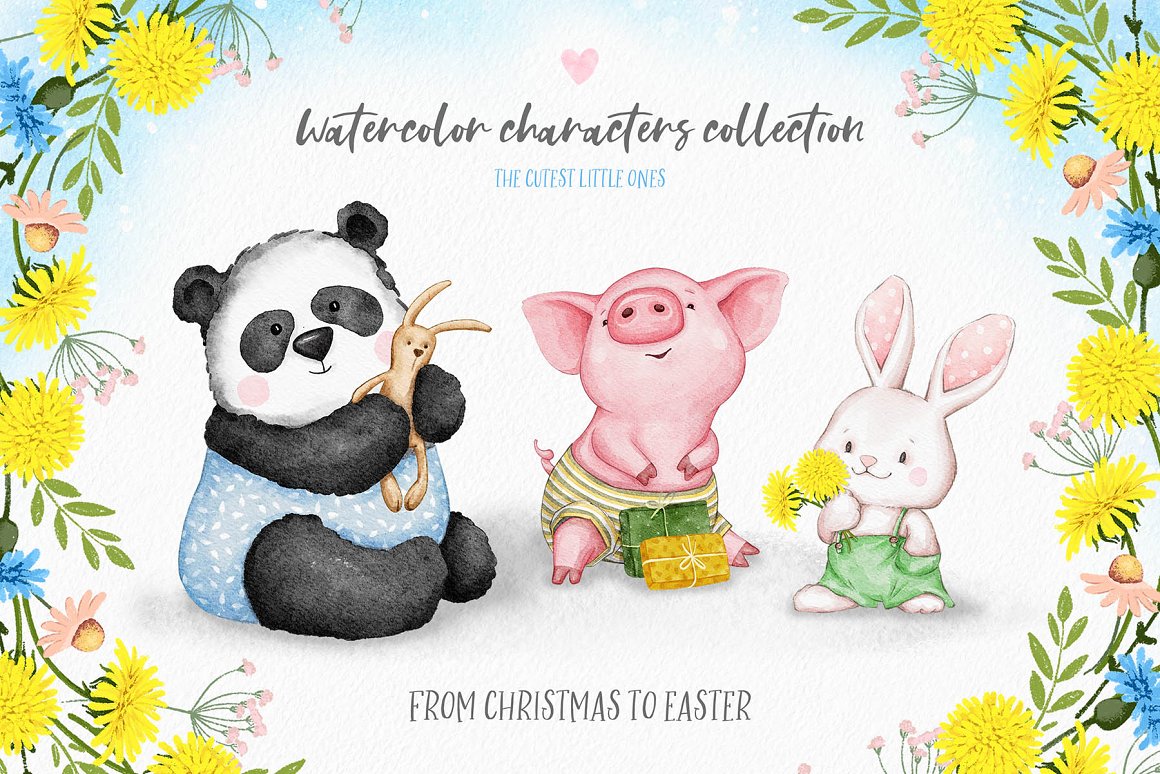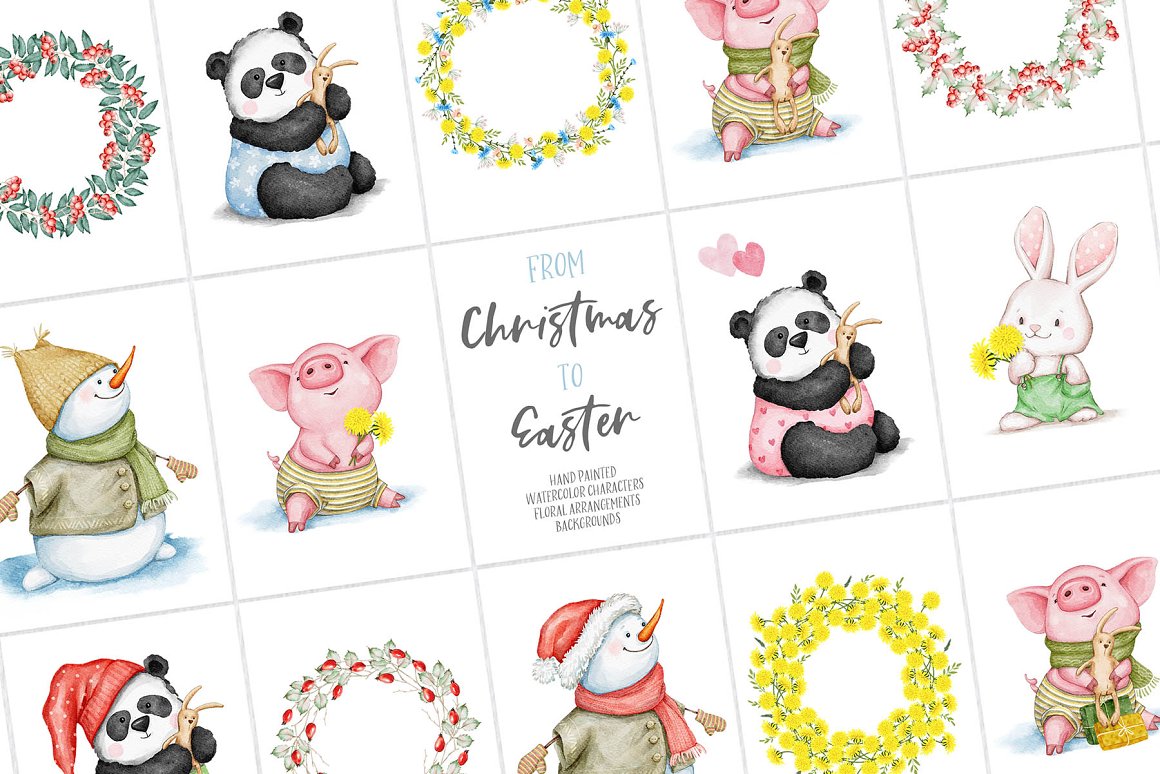 Meet my new merry watercolor characters collection “From Christmas to Easter”