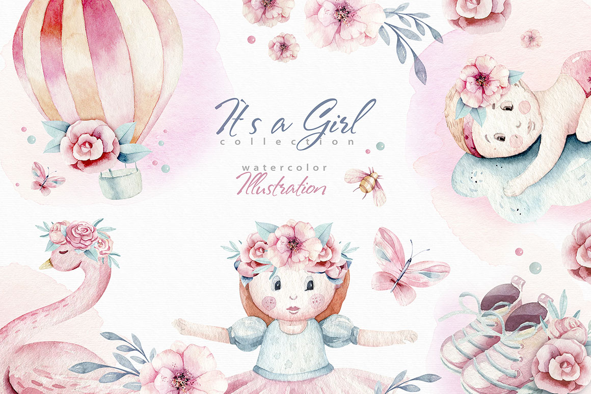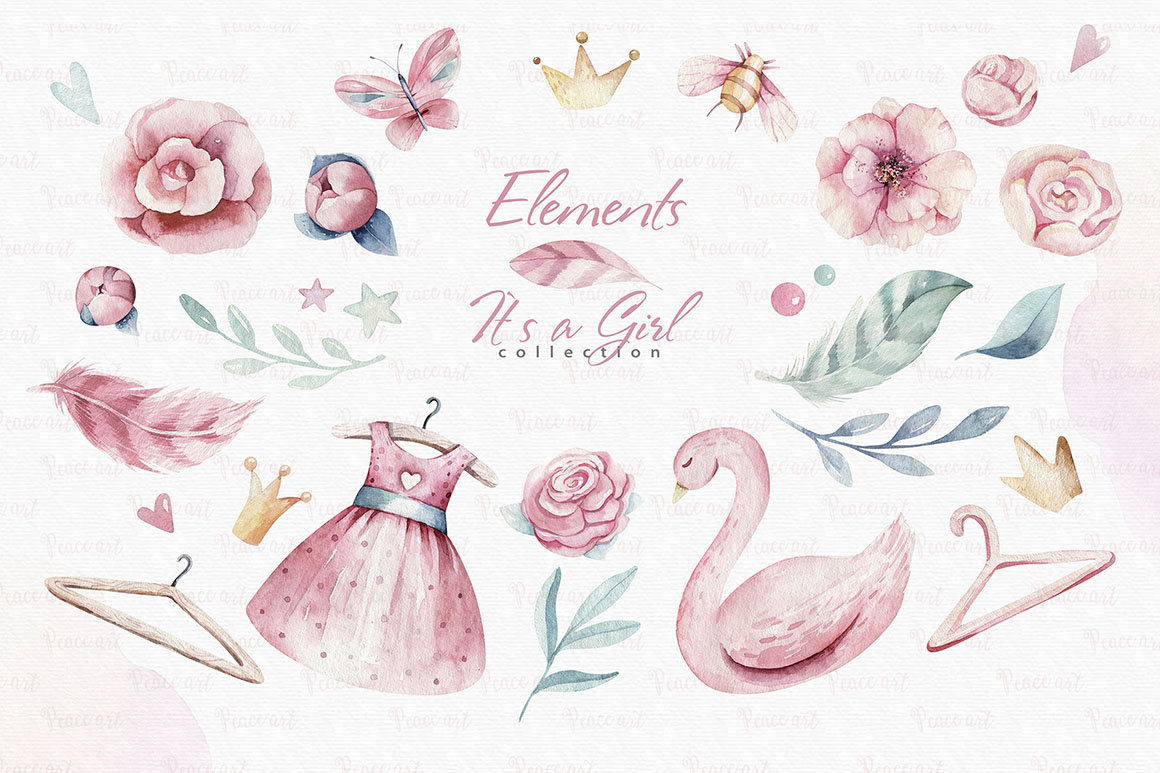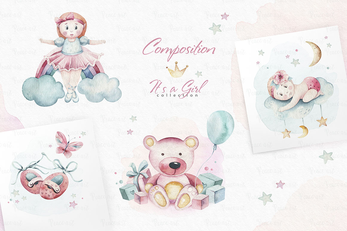 3. Baby girl watercolor collection from Peace ART