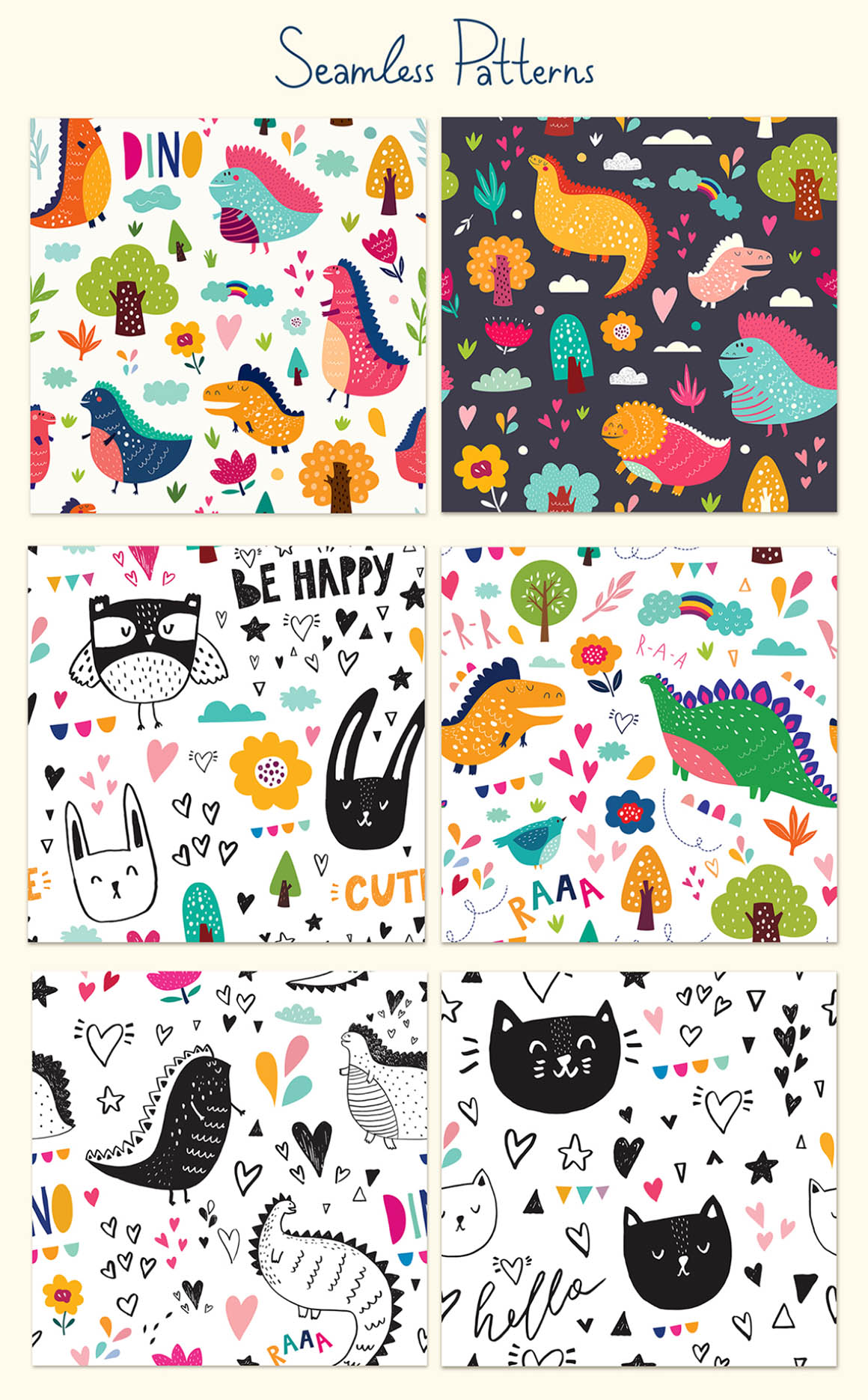 - 6 Seamless patterns: EPS (saved in Illustrator10) and JPG formats 300 dpi