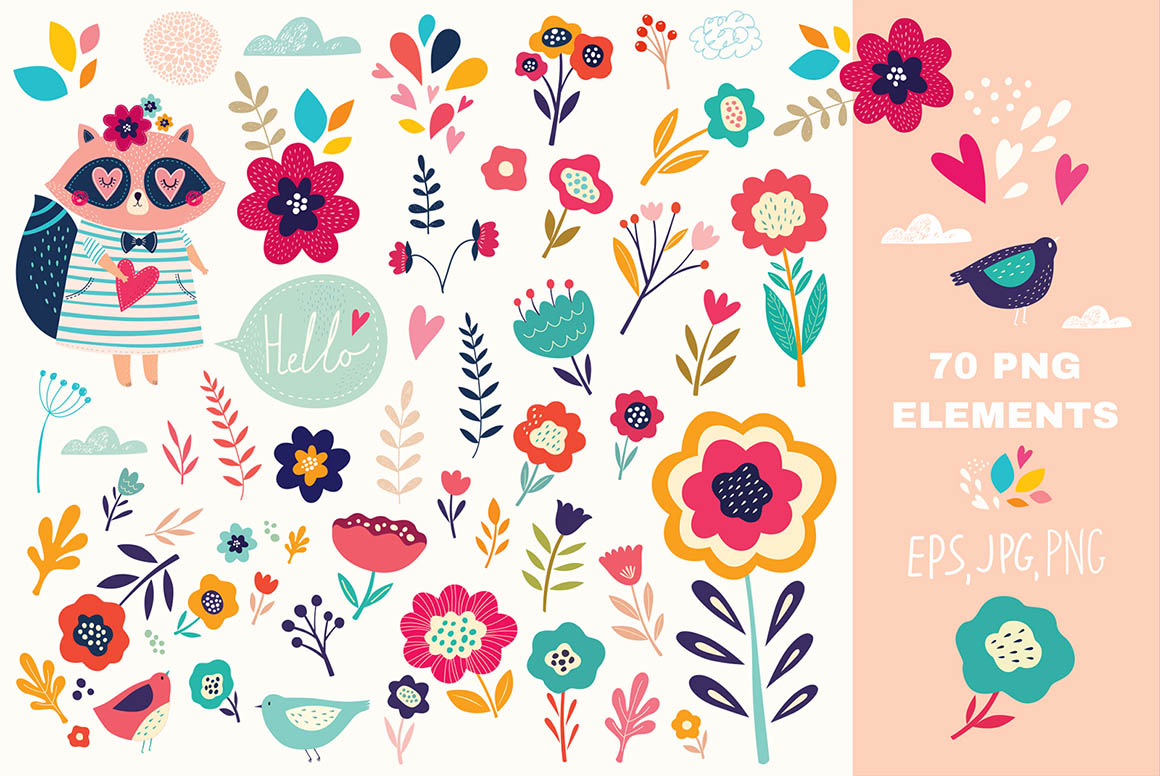 If you are looking for cute & funny style vector illustrations or watercolor decorative graphic ellements then you are at the right place because here you will get a great collection of amazing illustrations for your new projects. These graphics are in vector and bitmap formats so all are great for your new web design or any print design projects. Enjoy 😉