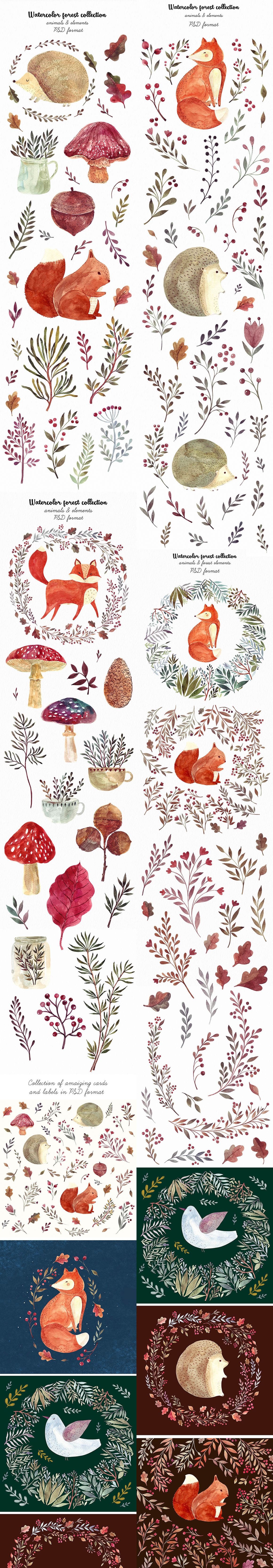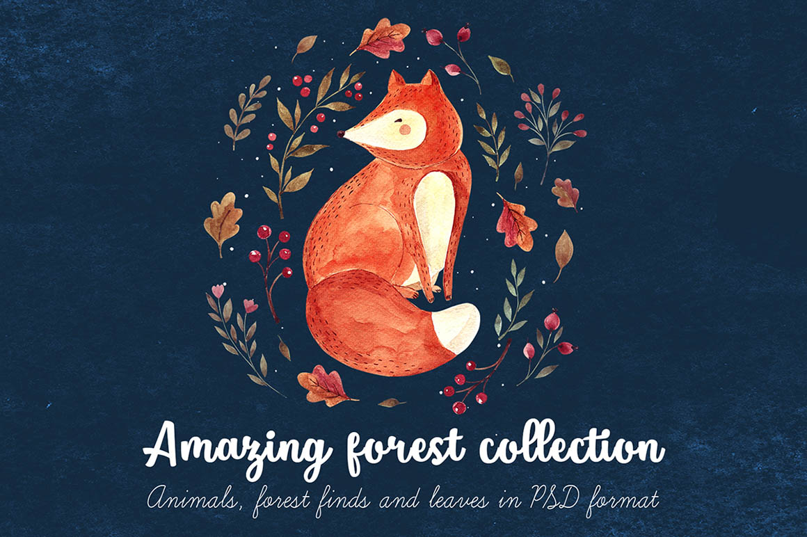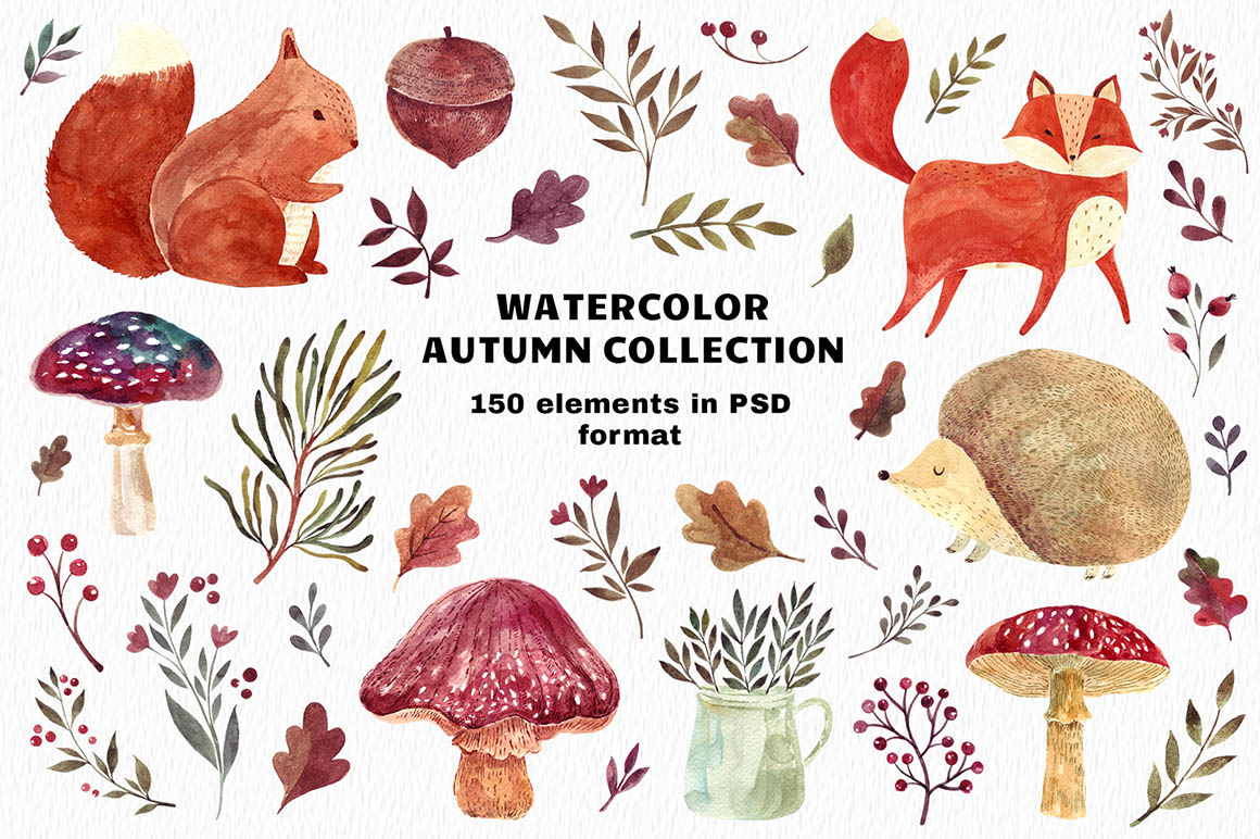 This is a New Big Great Watercolor Autumn Collection with animals and forest elements. All watercolor elements was hand painted, scanned and carefully prepared to the best use in design. Files prepared to PSD format for easy combining items in your unique projects. Can be used in any amazing design: greeting cards, stationary, invitations, stickers, art prints, web design, posters, t-shirts, logos, labels, bags, packaging and more.