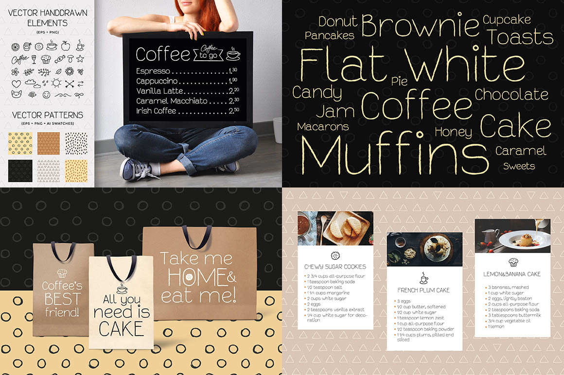 - BONUS 1: A set of vector handdrawn elements (EPS + PNG)
