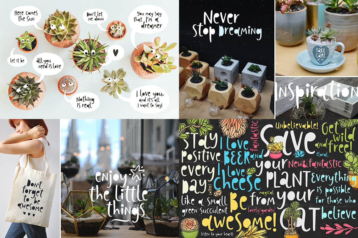 Let me introduce “Rodriguez” – a new bright typeface! It’s a display font, perfect for playful apparel, prints, article headlines, web, lettering compositions, print products, t-shirts, and many-many other things! Combine it with some art, and use bright colors! You’ll get the font in all main formats + pleasant bonus – a colorful vector set of handdrawn succulents.