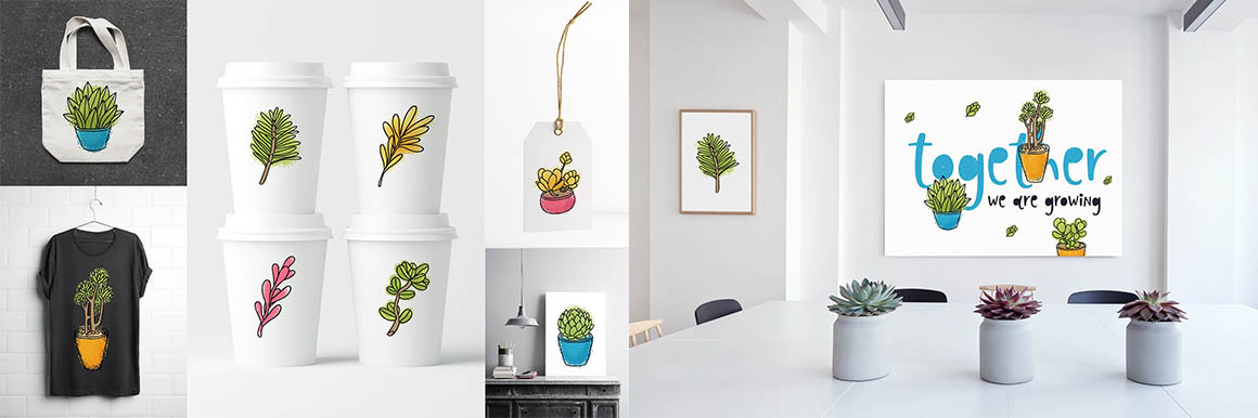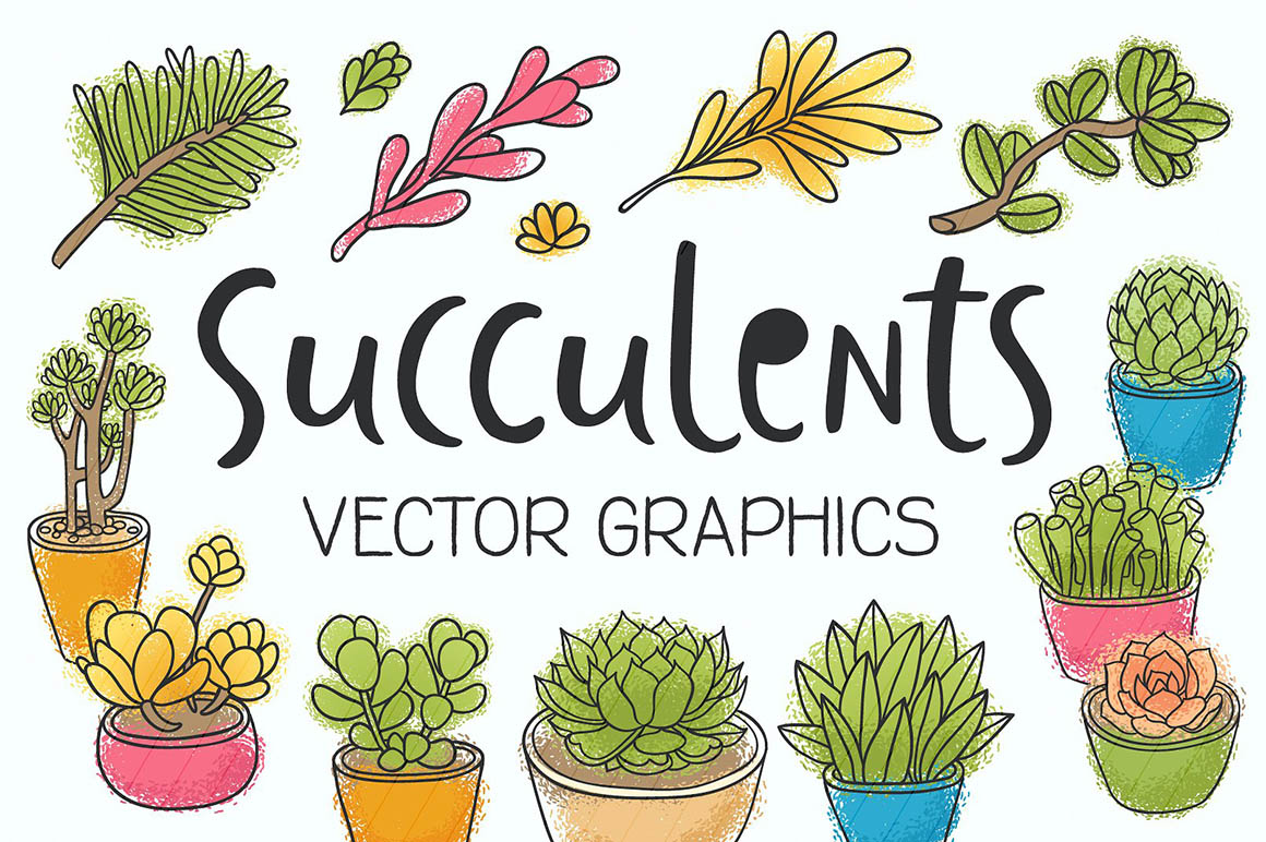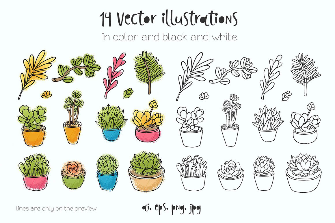 - BONUS: A set of vector handdrawn succulent plants, 14 elements (AI, EPS, transparent PNG, JPG)