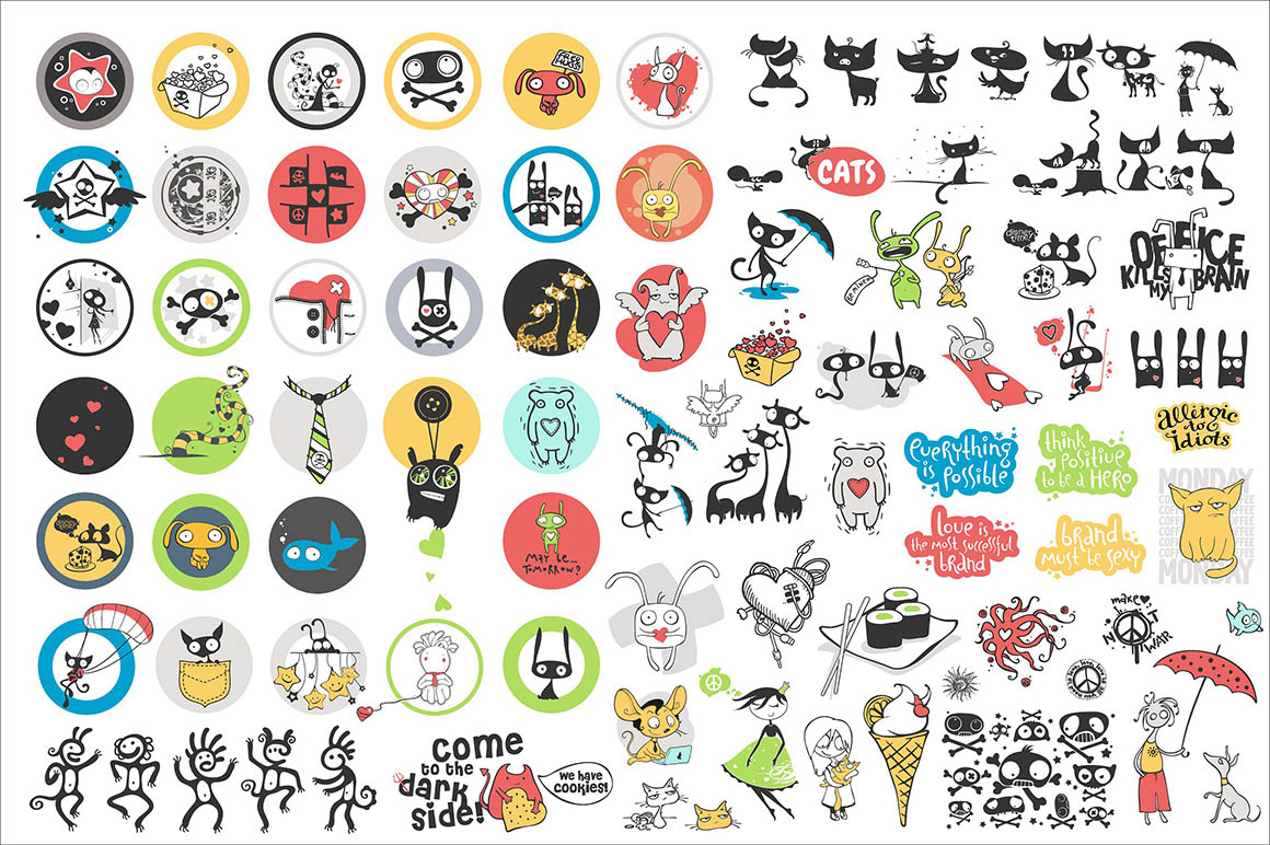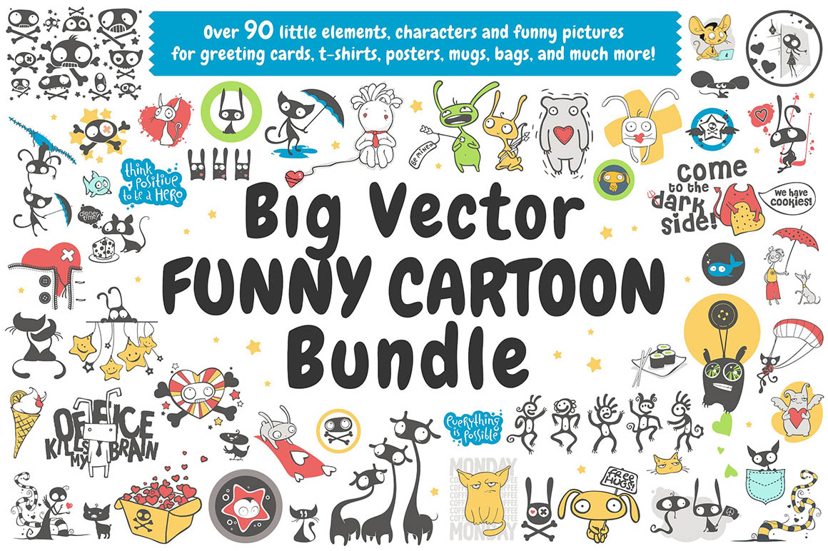 - 1 EPS file with MORE THAN 90 exclusive vector design elements (characters, things, words etc.) – you can see exaclty what you’ll get on the last preview image.