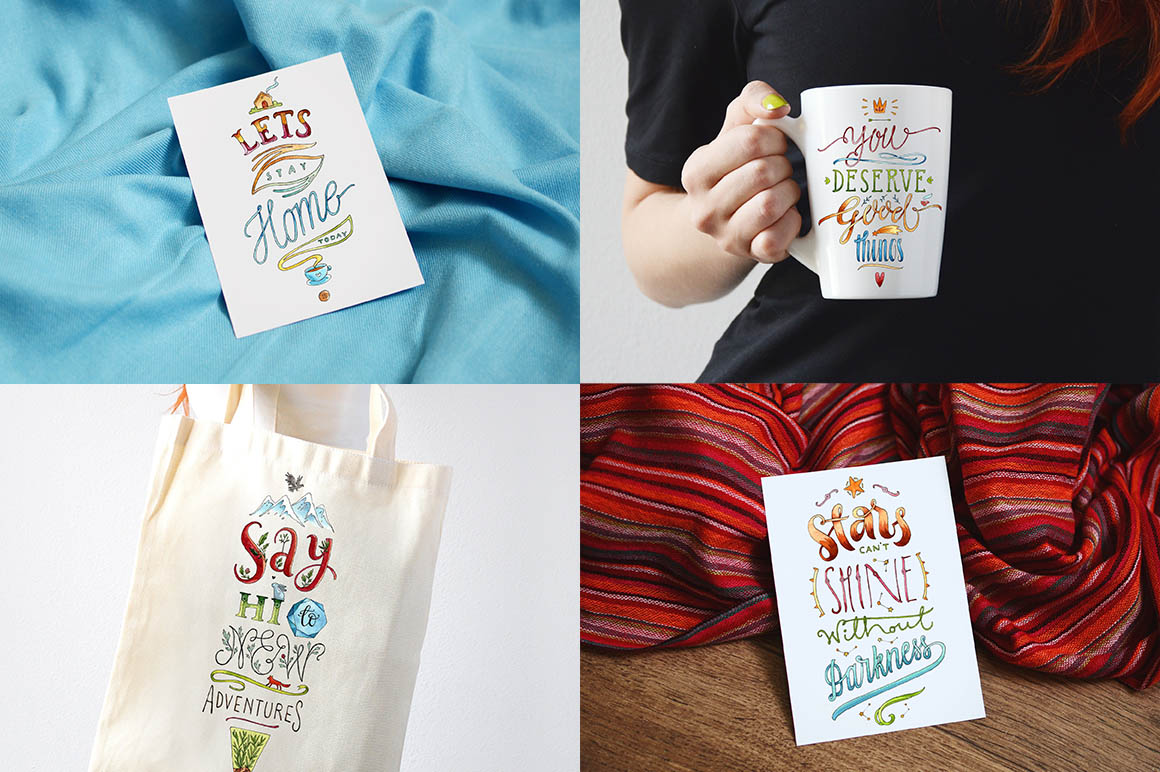 You can use these designs, characters, letterings for greeting cards, apparel, posters, mugs, bags, packaging, and much more!
