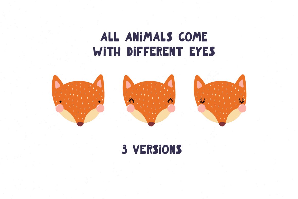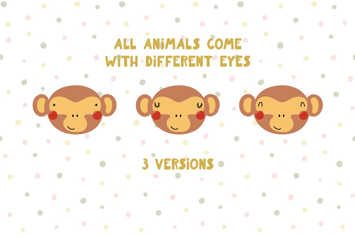 - 13 cute animals + 13 portraits, with different eyes (AI, EPS10, separate high resolution PNG with transparent background)