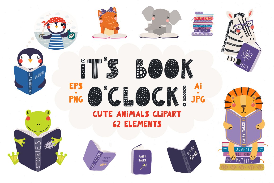 My cute animals just love reading books! New vector illustrations collection – all about the fun of reading. Also included some books clipart, hand drawn alphabet, quotes about reading and pre-made designs. Inspired by Scandinavian design and Japanese kawaii aesthetic, and the month of September, which is all about learning new things. 🙂
