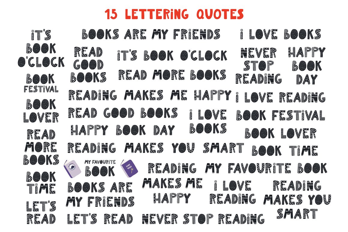 - 15 lettering quotes (AI, EPS10, separate high resolution PNG on transparent background)