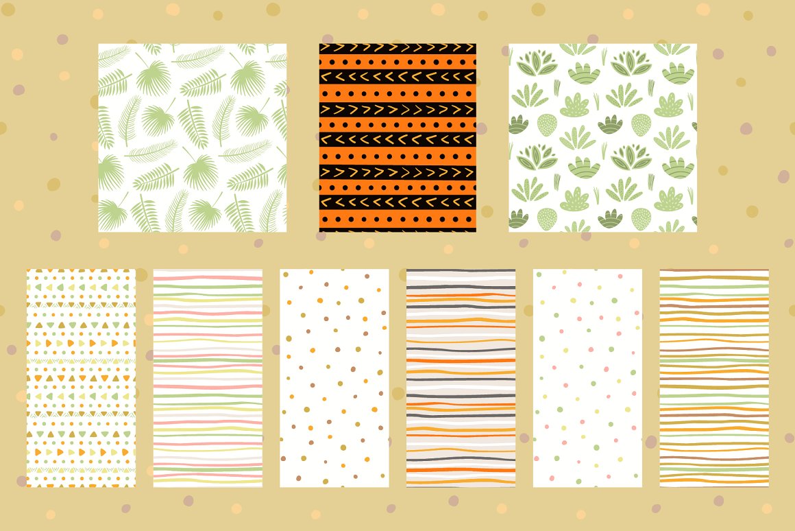 - 9 seamless patterns (AI, EPS10, high resolution PNG with transparent and color background)