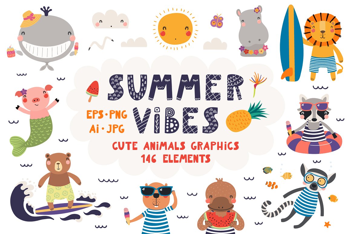 4. Summer Vibes – Cute Animals Graphics from Sceptical Cactus
